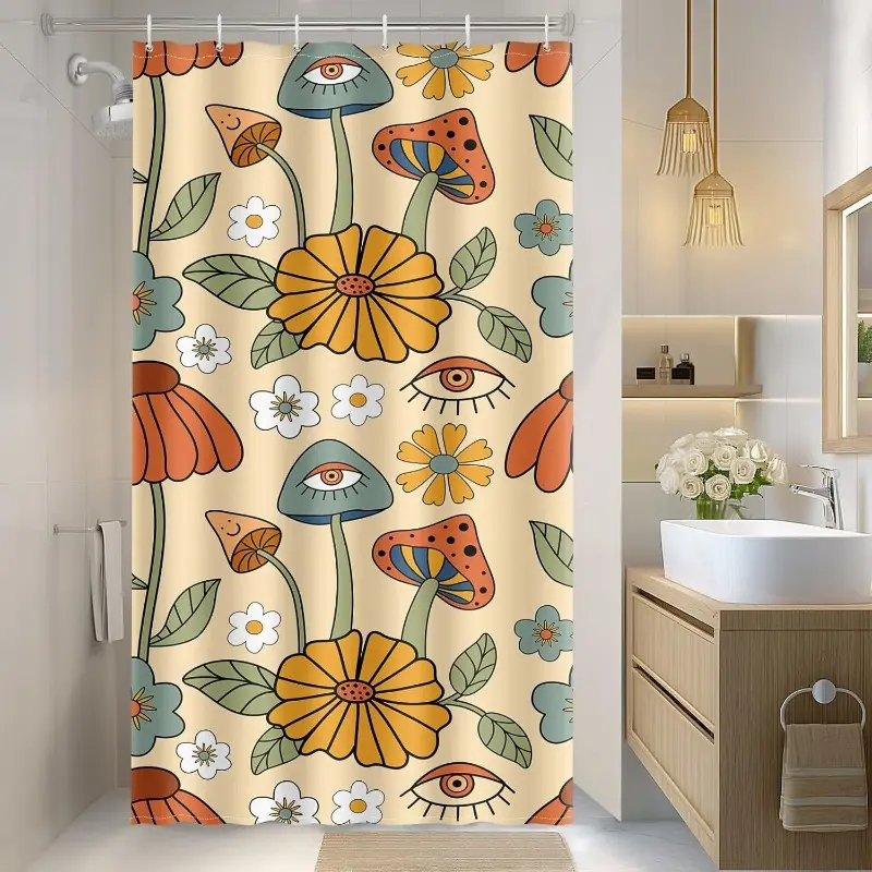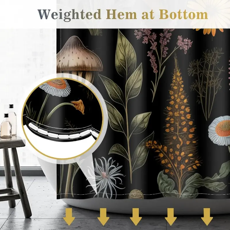 Vintage Dark Cottagecore Mushroom Shower Curtain - Retro Botanical Wildflower Print, Waterproof Fabric Curtain with 12 Hooks | Whimsical Gothic Bathroom Decor #showercurtain #mushroom #cottagecore #vintage #botanical #waterproofcurtain #gothicdecor