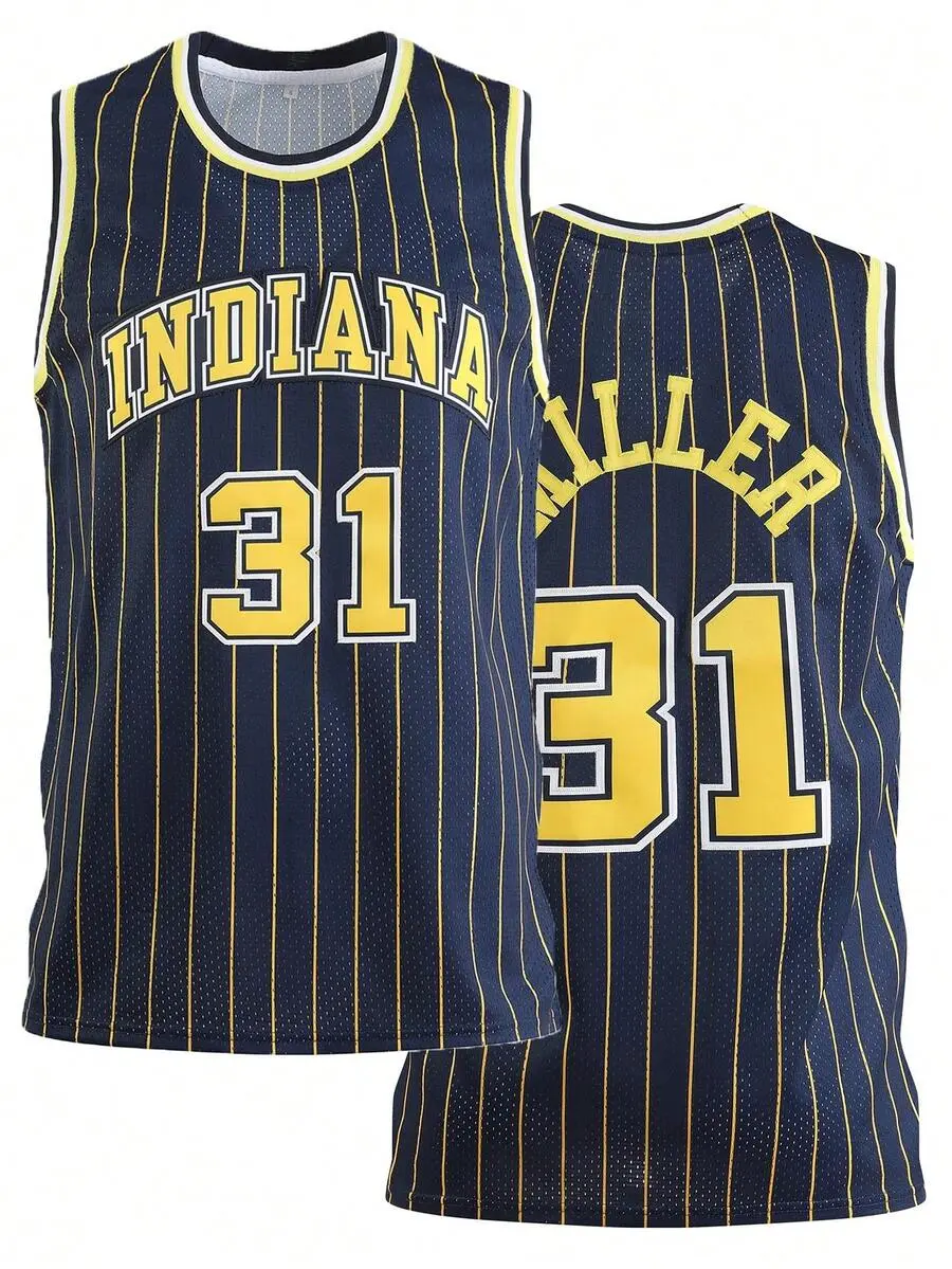 Atonmore Men's Basketball Jersey - No.31, Blue, Embroidered & Stitched Basketball Top, Sleeveless Tank Top