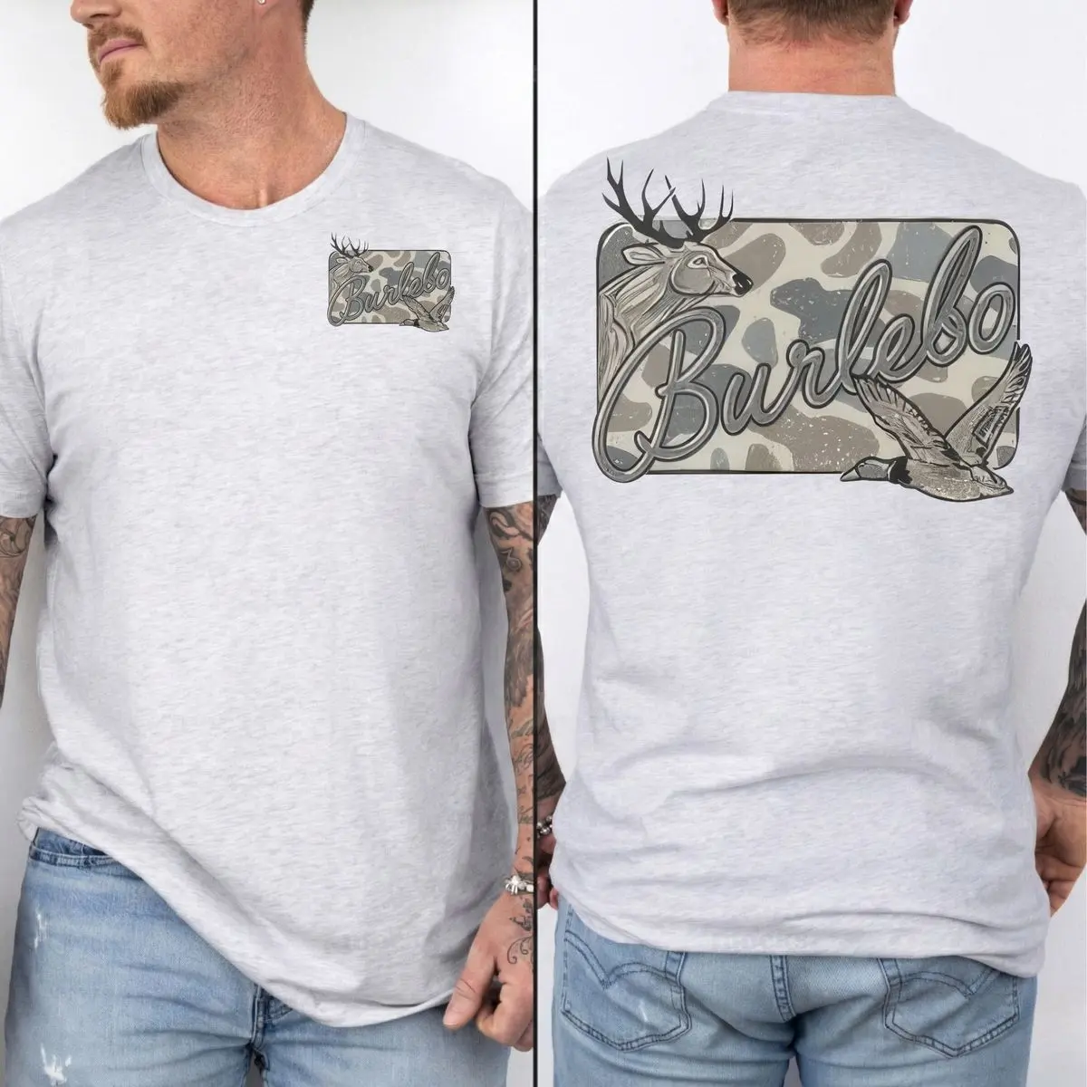 Vintage Camo Hunting T Shirt, Deer And Duck Outdoor Graphic Tee For Men And Women, Casual Unisex Sportsman Shirt, Rustic Everyday Wildlife Apparel With Country Style