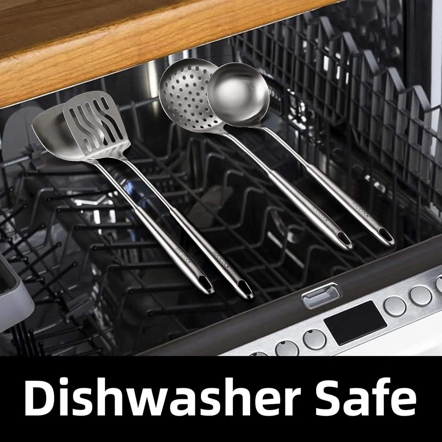 ·All tools in this stainless steel cookware set are odorless, durable and long-lasting. It is easy to clean while supporting dishwasher safe to enhance your efficiency. If you want a stainless steel kitchen utensil set, this will be an ideal choice for your kitchen.