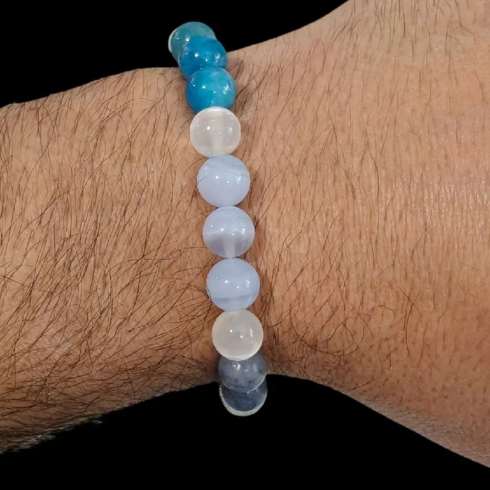 This unisex bead jewelry features a stunning array of natural stones. It includes Lapis Lazuli, Angelite, Apatite, Blue Aventurine, and Selenite. Each stone is carefully selected for its unique beauty. Perfect for anyone who appreciates the elegance of natural gemstones. The bracelet is a versatile accessory, suitable for both men and women.