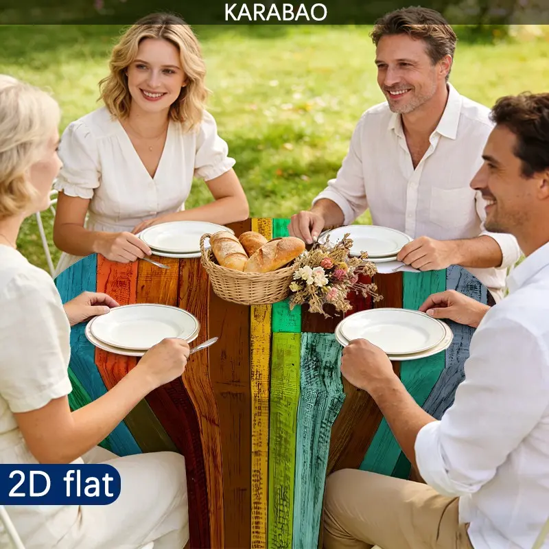 Rainbow Stripe Round Tablecloth, Colorful Fashion Home Decor, Suitable for Various Home Decor and Dining Table Settings, Outdoor Tablecloth, Picnic Accessory