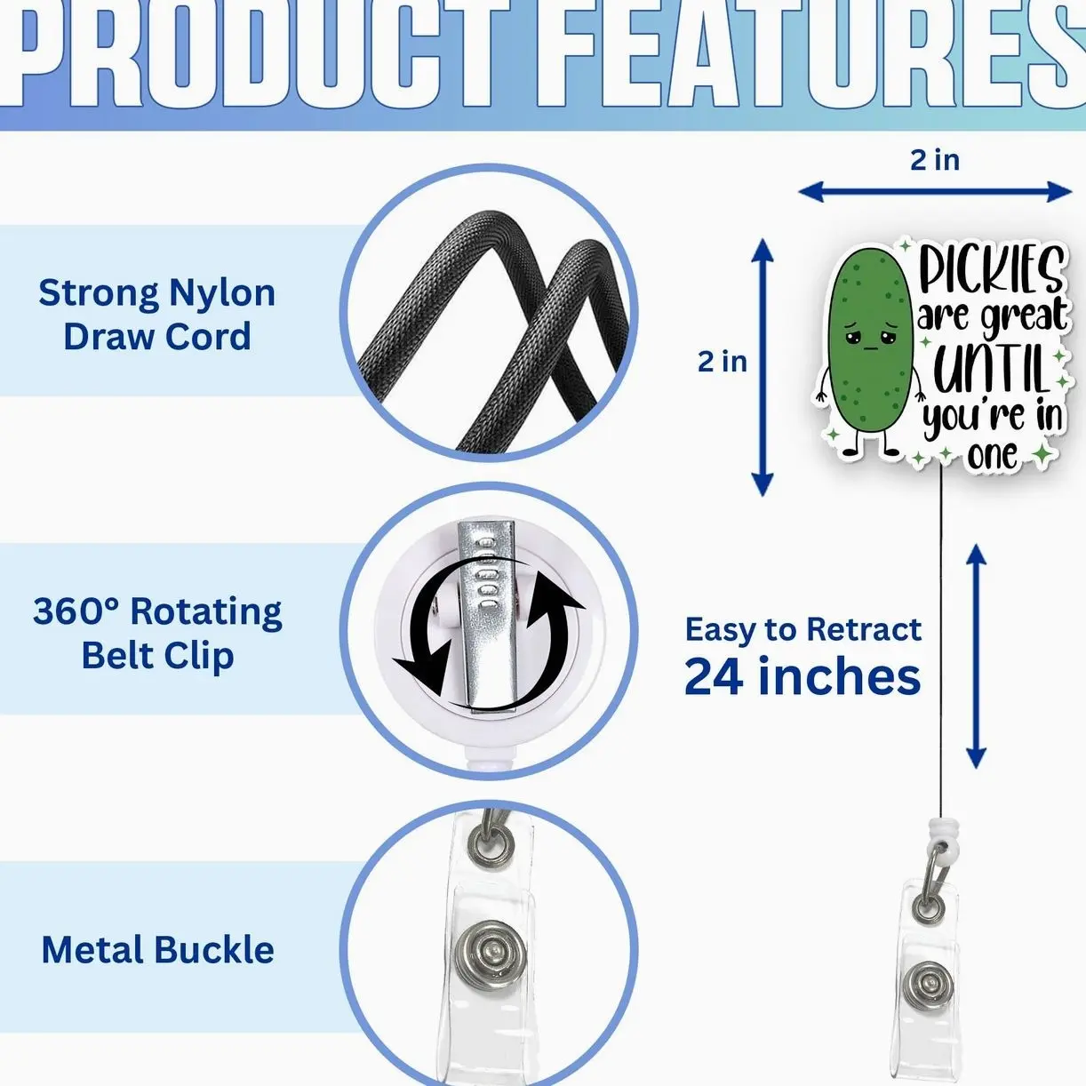 "Pickles Are Great Until You're In One" Badge Reel | Funny Pickle Saying Gift for Nurse, RN, CNA | Retractable Medical ID Holder.