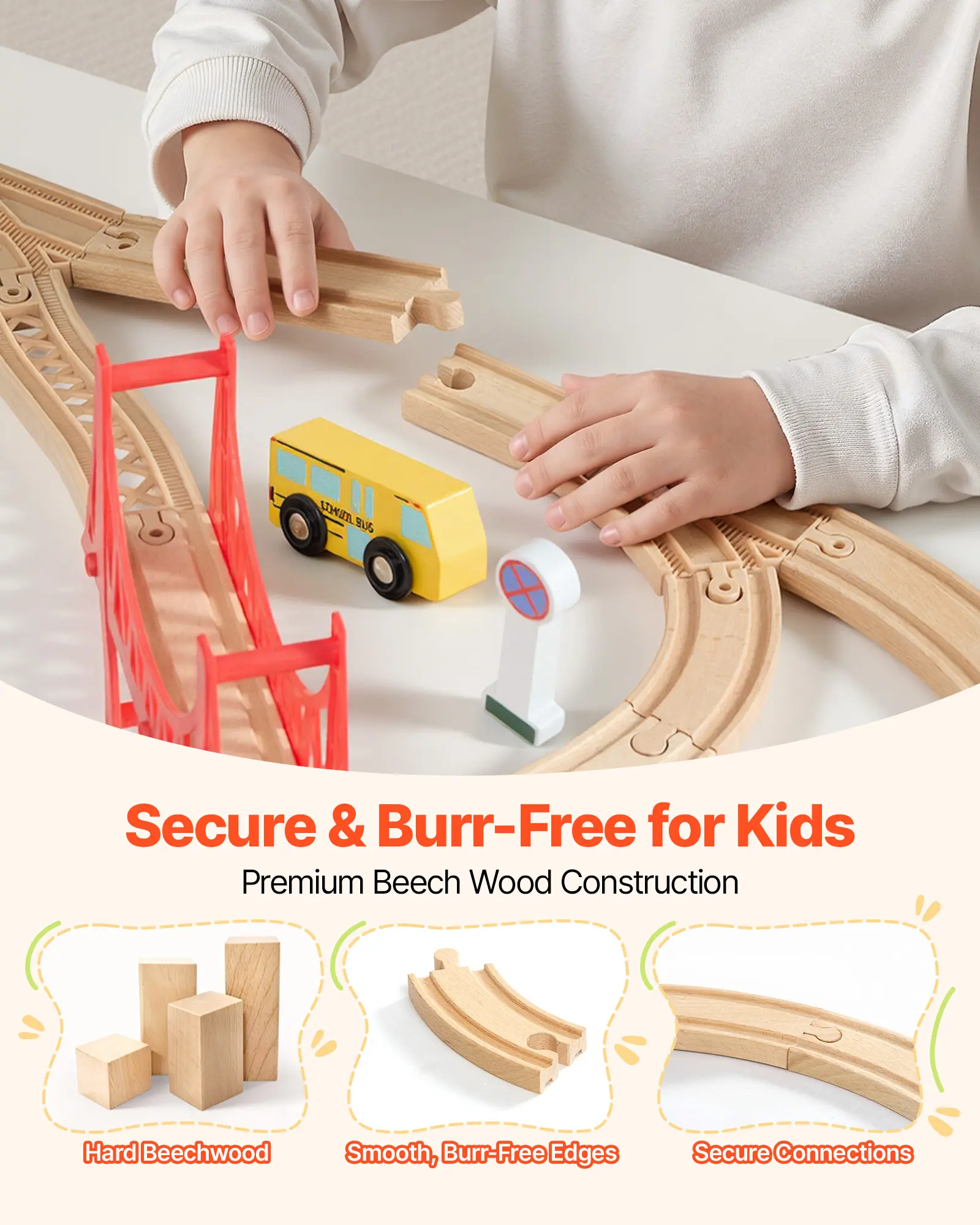 Security Comes First: Crafted from quality beech wood with smooth, burr-free edges. The wood train track set is gentle for little hands, with tight track connections and smooth-running trains built to endure years of play
