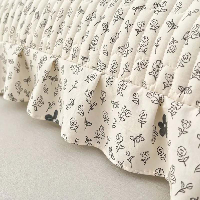 1pc Floral Pillowcase, Quilted Edge Design, Thickened Comfort, Breathable, Suitable for All Seasons, Bedding Accessory