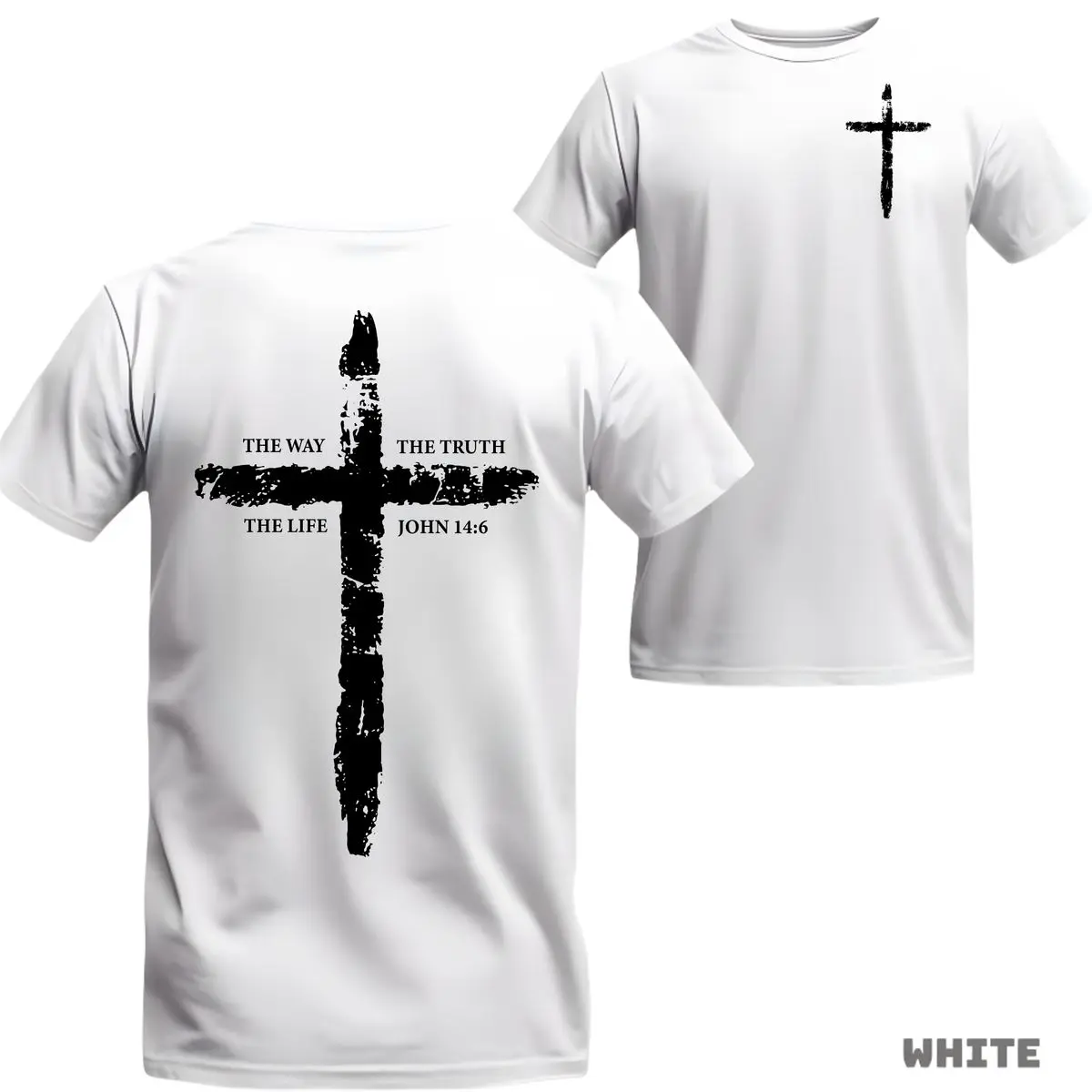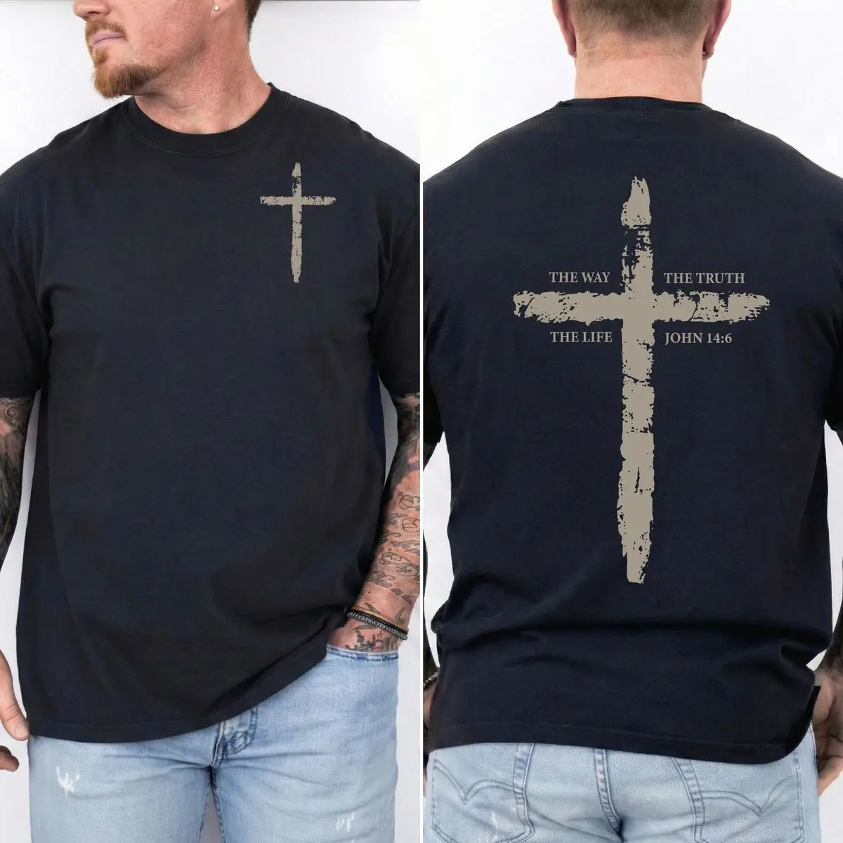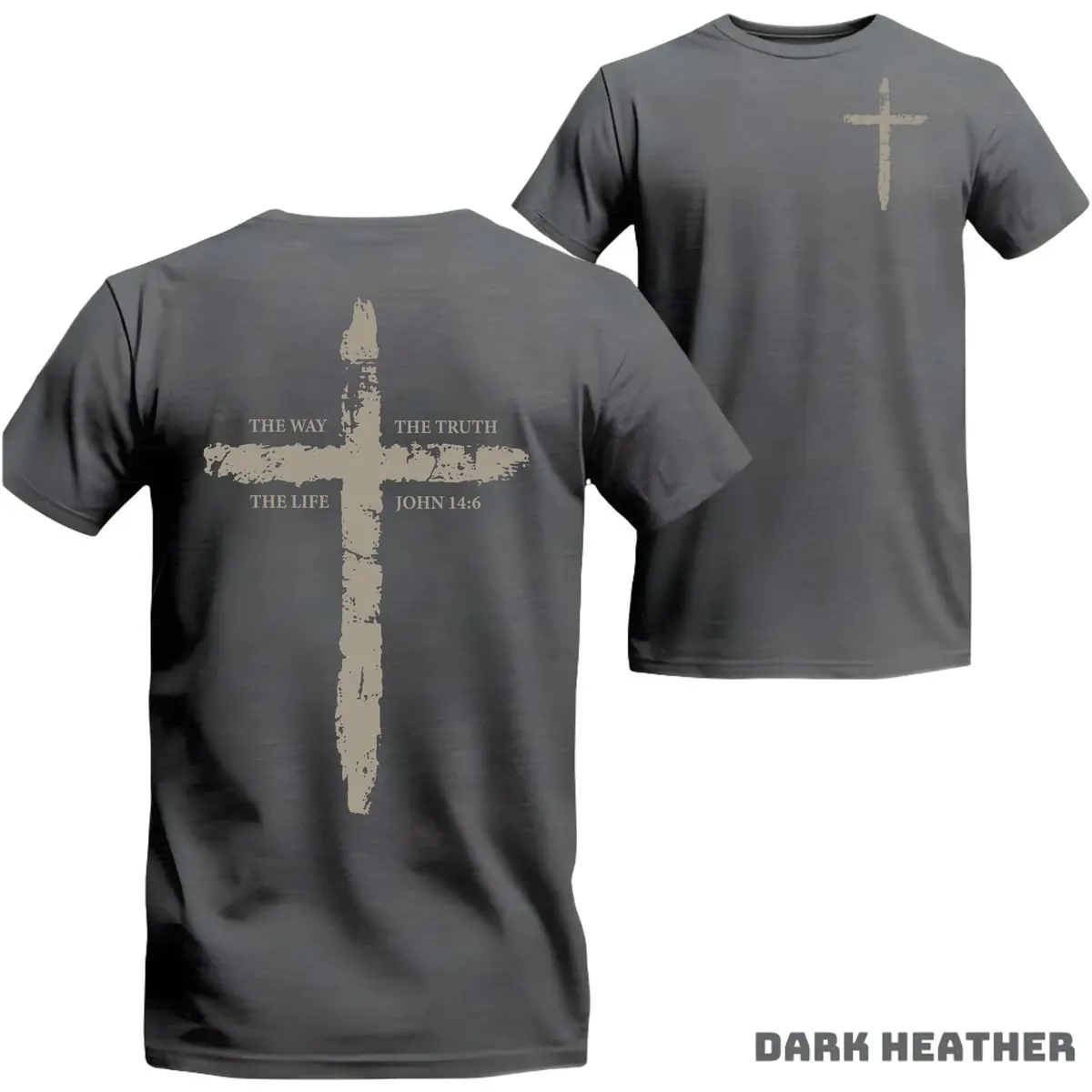 Rustic Cross Bible Verse T Shirt, John 14 6 Faith Graphic Tee With The Way The Truth The Life Message, Casual Unisex Christian Shirt, Giftable Everyday Worship Style