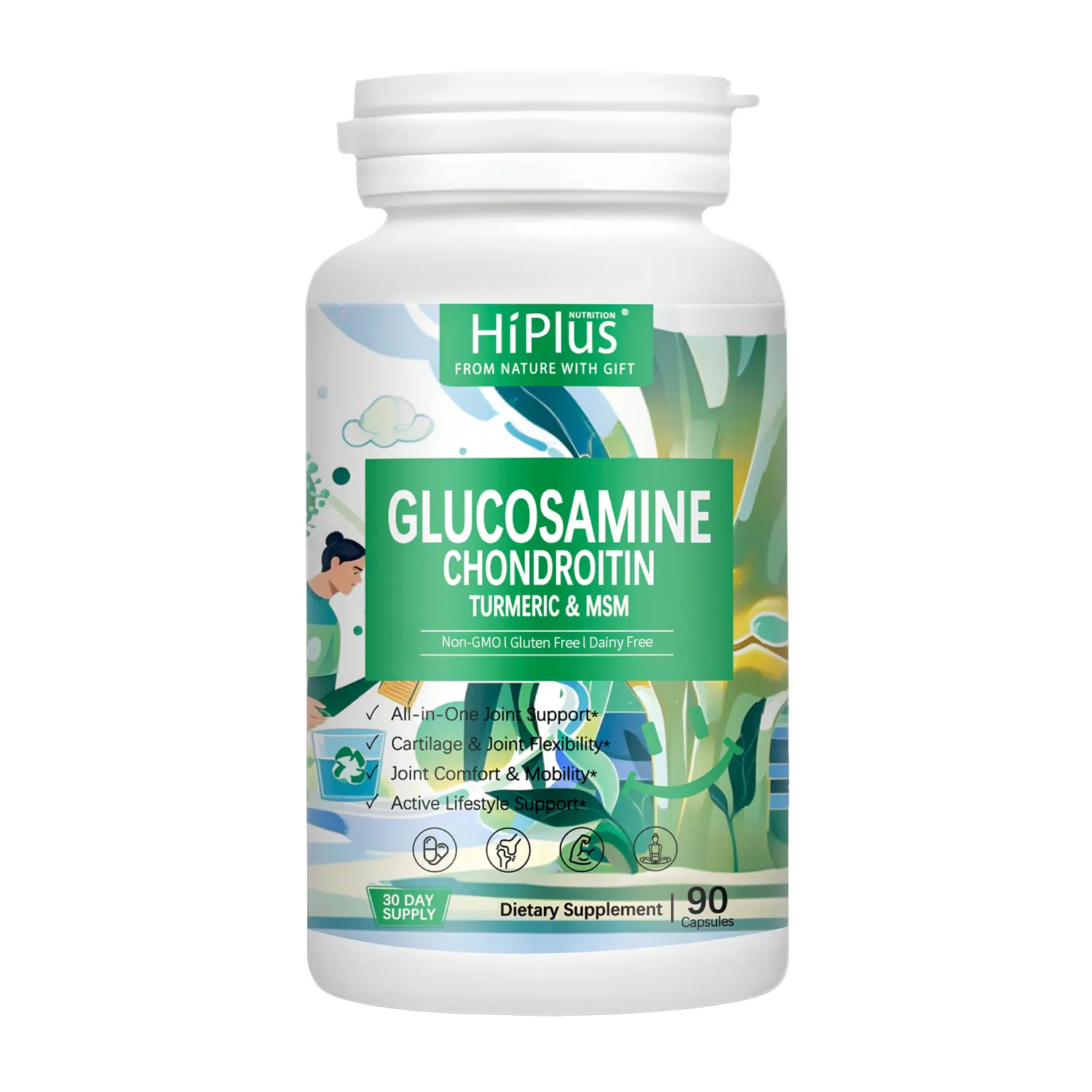 HiPlus All-in-One Joint Support – Glucosamine Chondroitin Turmeric & MSM for Comfort, Mobility & Flexibility | 30-Day Supply