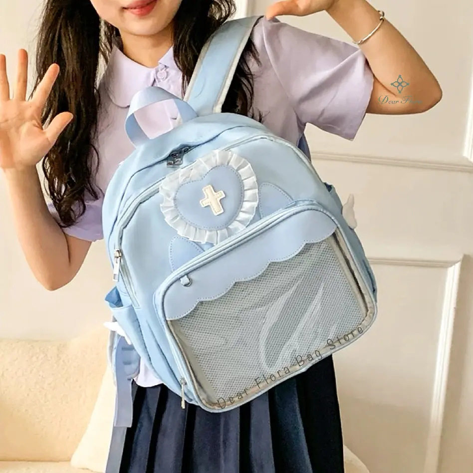 Y2K Cute Clear Ita Bag Women Lolita Backpack Kawaii Girl Transparent Pocket DIY Display Shoulder Bag Rucksack Doll Tote Handbags