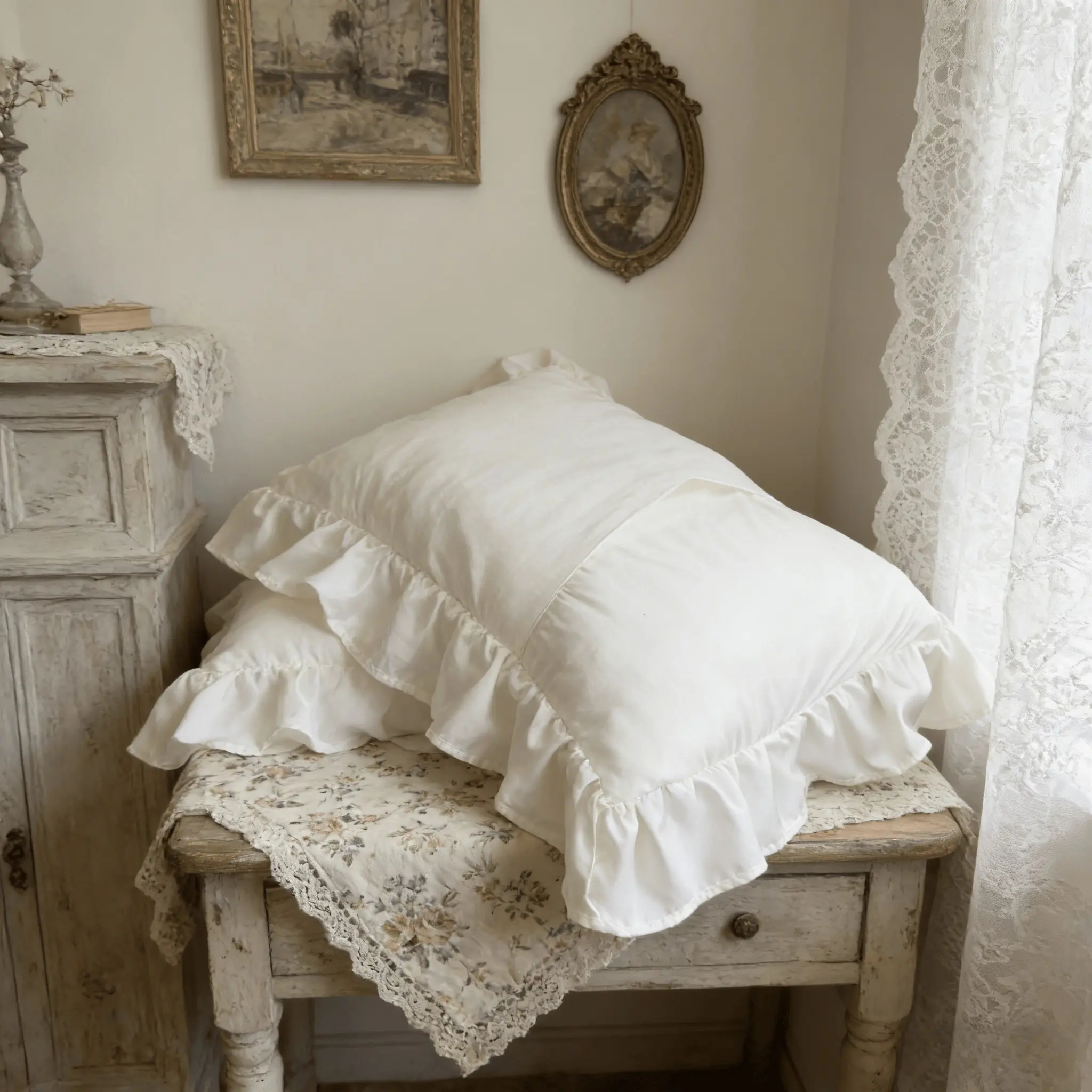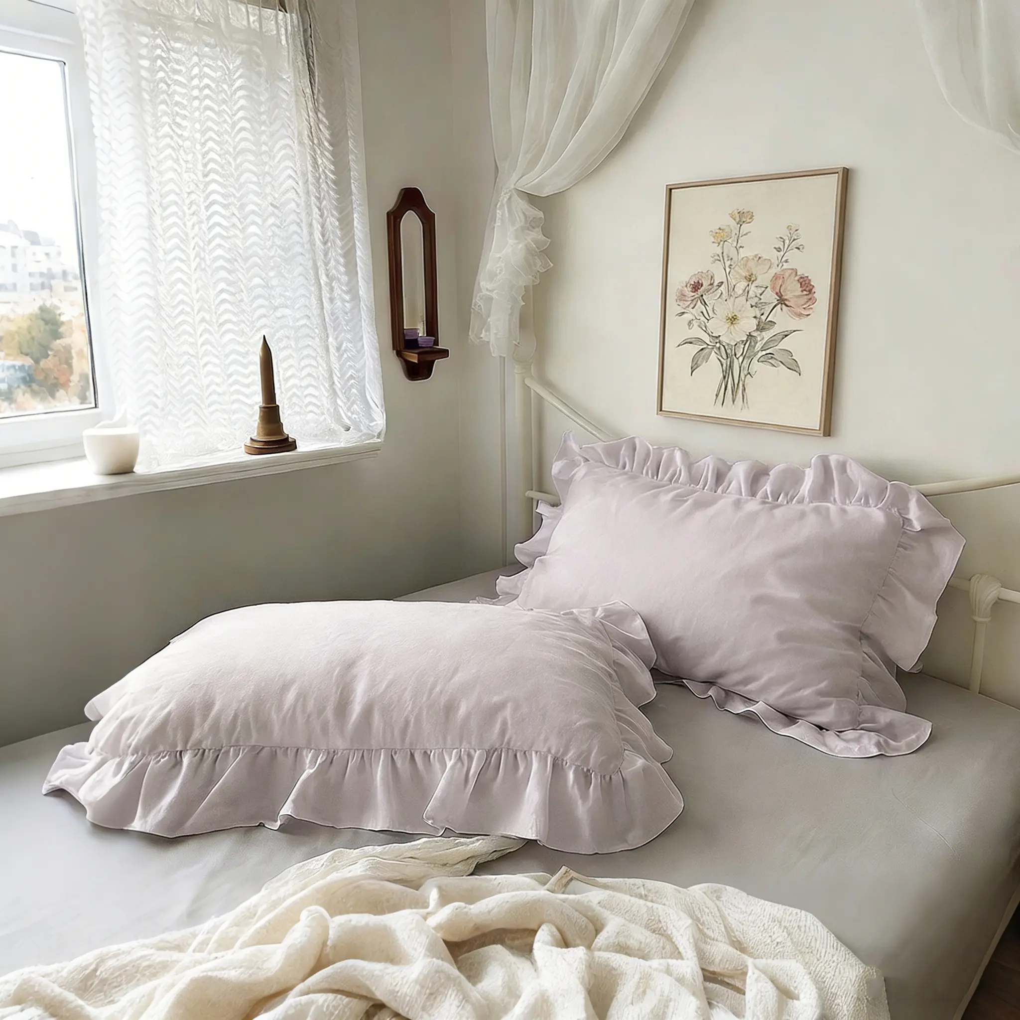 2 Pcs Ruffle Pillowcases, No Filler, Soft Microfiber Pillow Cases with Frilly Trim, Shabby Chic Decorative Pillow Covers for Bedroom,Year-Round Use,Cool Bed Accessories,Home Bedroom-Ideal Gift