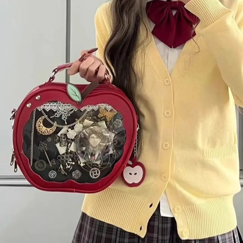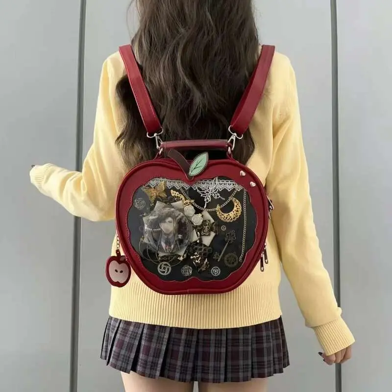 Y2K New Niche Design Apple Ita Backpack Harajuku Girl Transparent Pocket Cute Crossbody Bag DIY Display Knapsack Fashion Handbag
