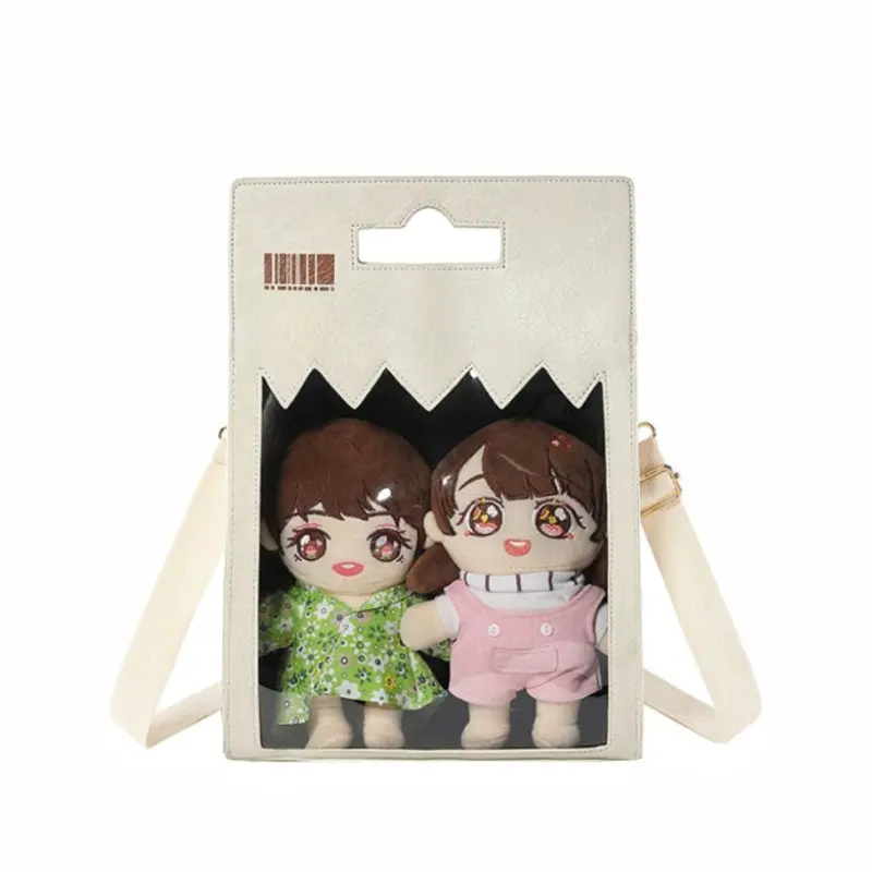 Made from PU, this bag measures W26cm × T11cm × H37cm. The transparent window is W20.5cm × H19cm. The adjustable shoulder strap is 120cm long. Colors may differ due to monitors and lighting. For color accuracy, contact us first. We ship quickly and pack carefully.