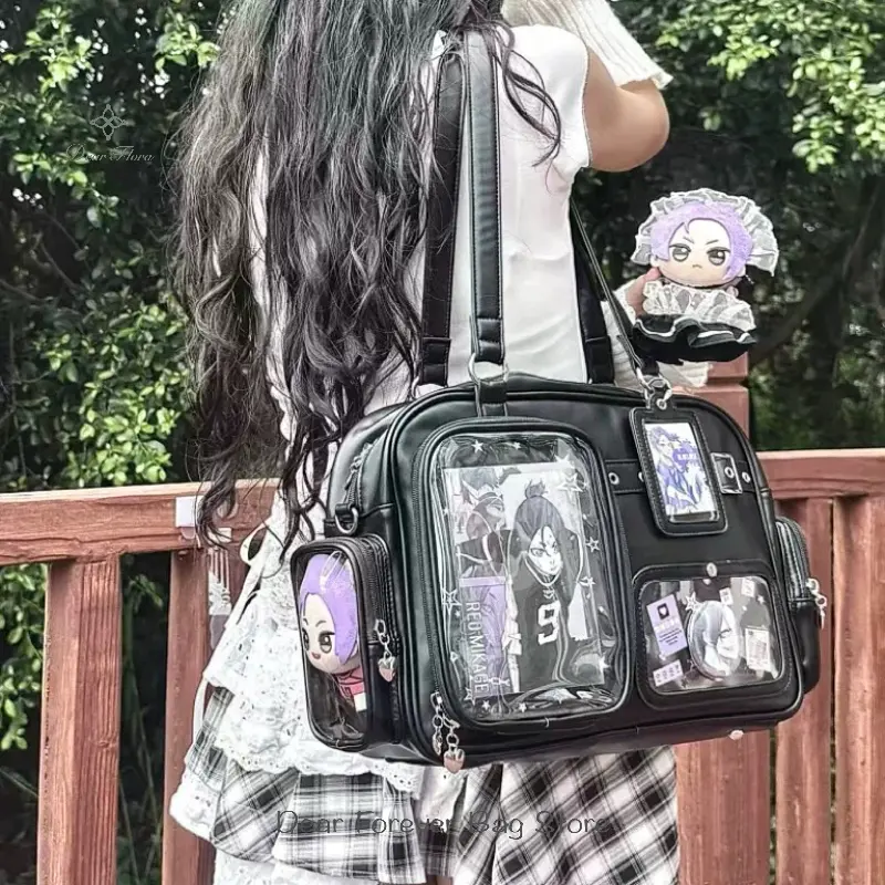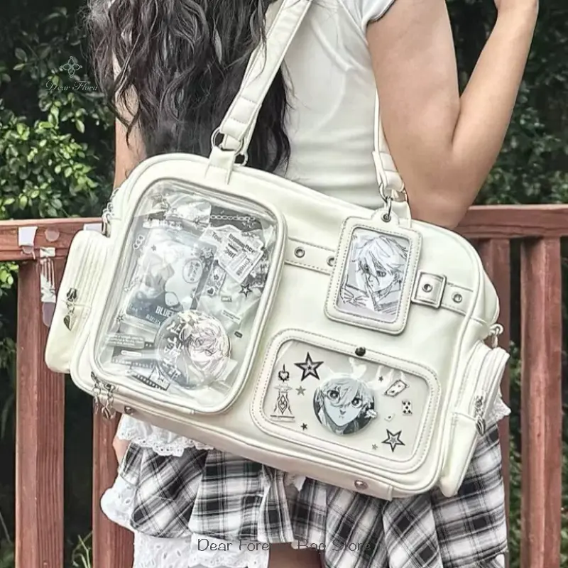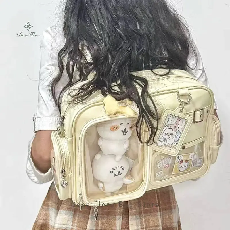 Y2K New Cute Ita Bag Concert Large Capacity Backpack Lolita Girl Transparent Shoulder Bag DIY Badge Display Casual Crossbody Bag