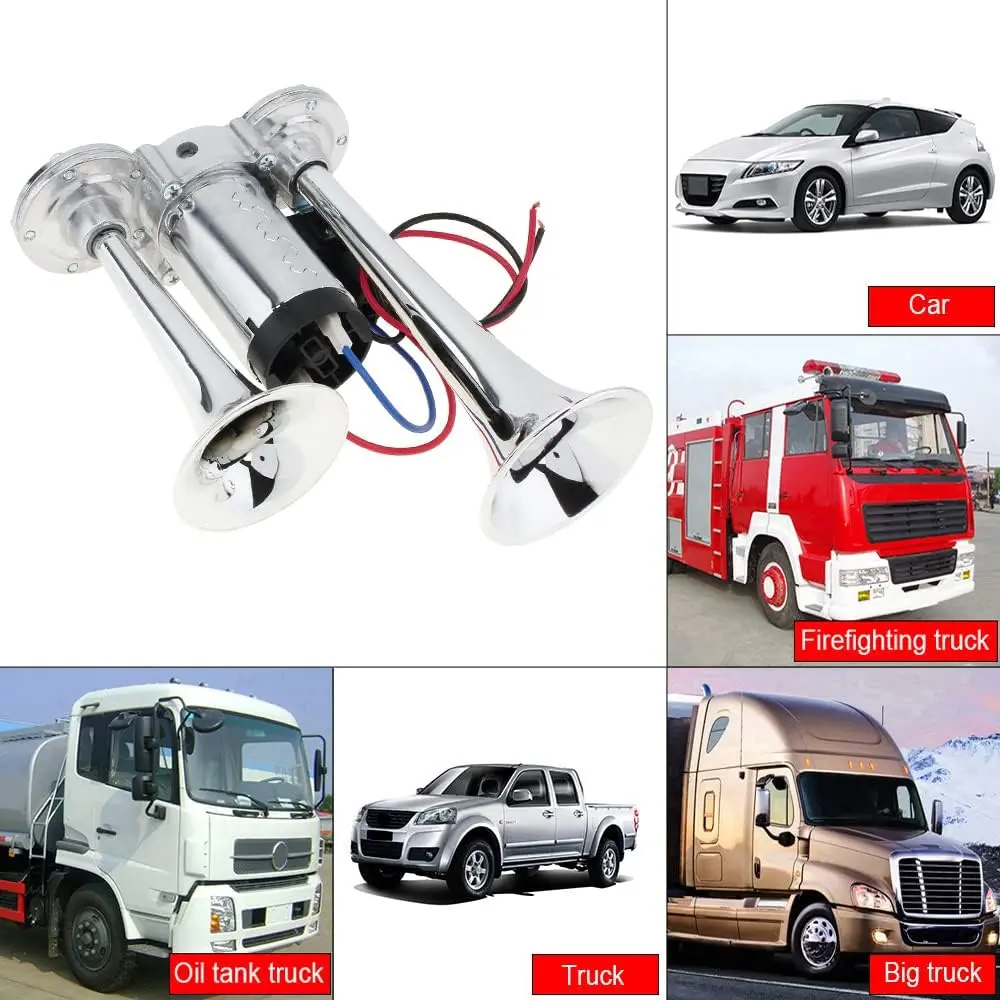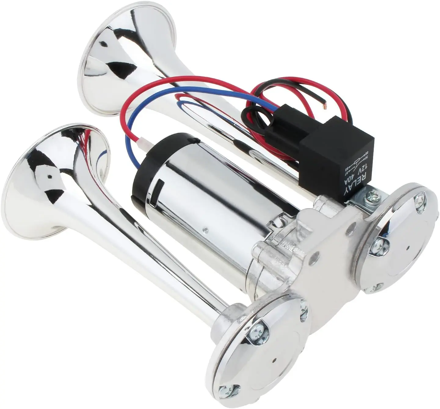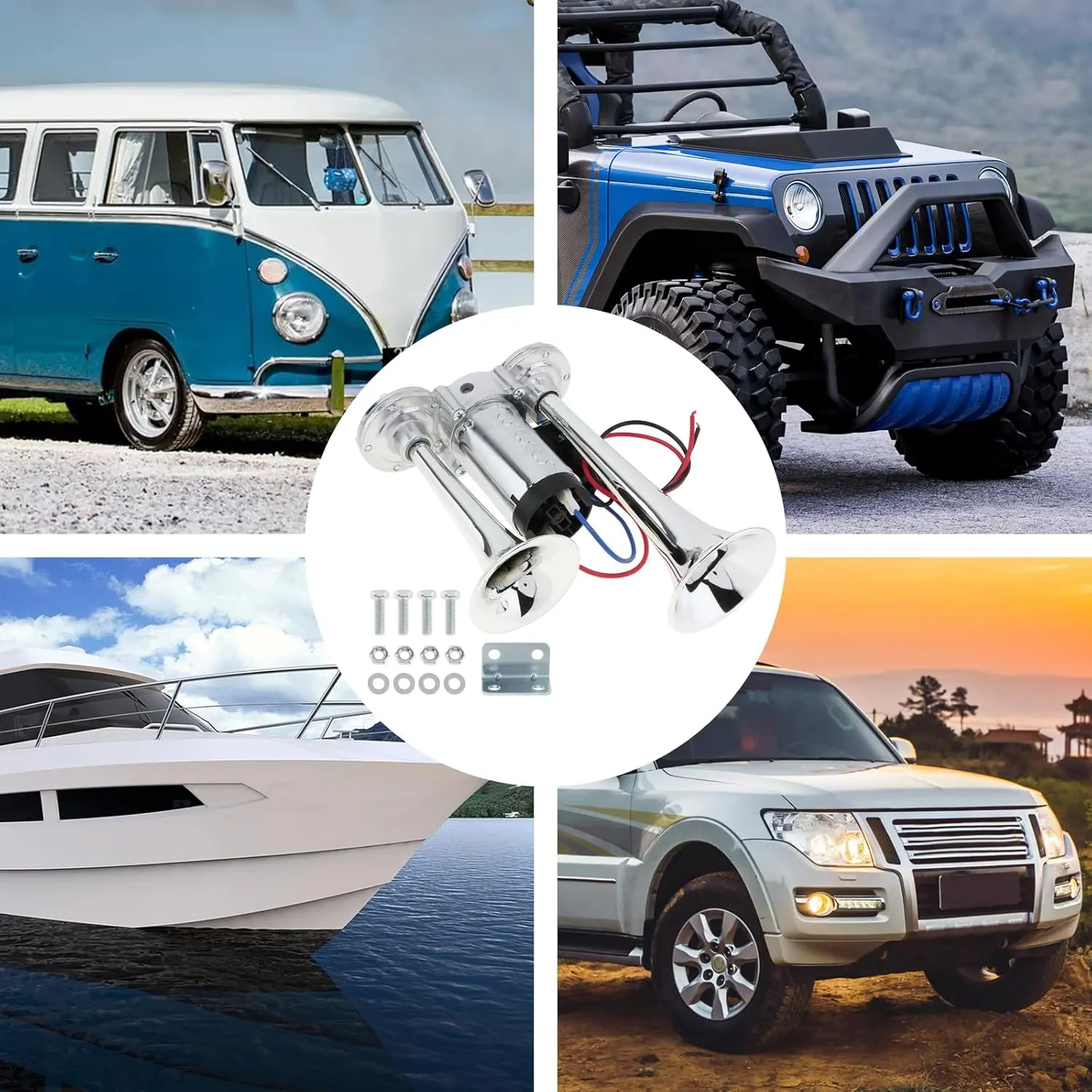 ·【Fit 12 Volt Vehicle】The air horn kit is suitable for Any 12V vehicles, can be used for SUV, motorcycle, yacht, boat, off-road vehicle, bus, train, etc.