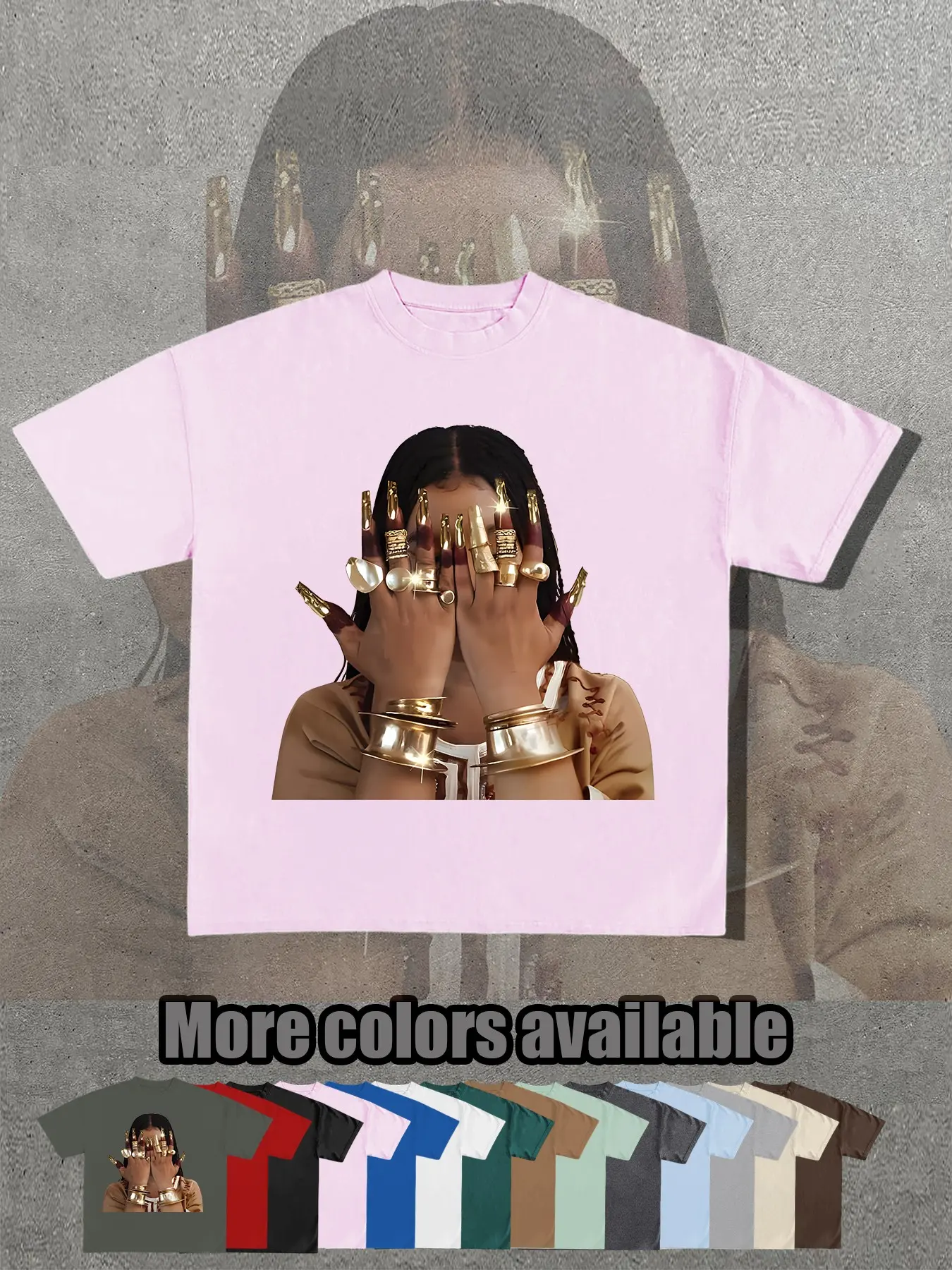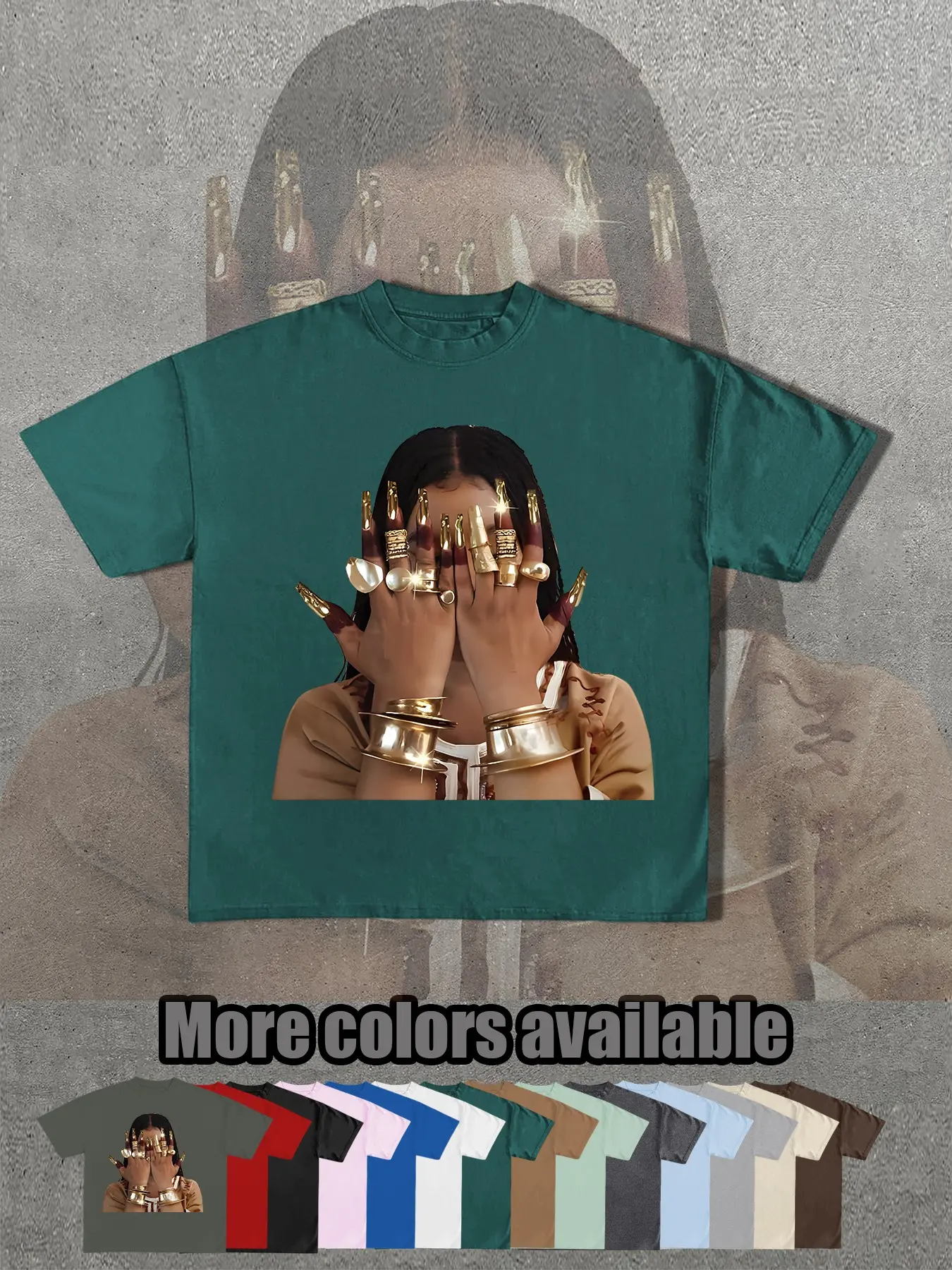 14 Color Options, Retro Egyptian Queen Gold Nail Print T-Shirt, Unisex Short Sleeve, Loose Fit, Street Style, Summer Fashion Essential