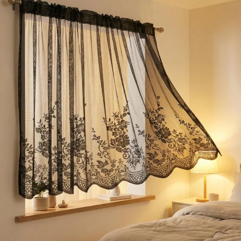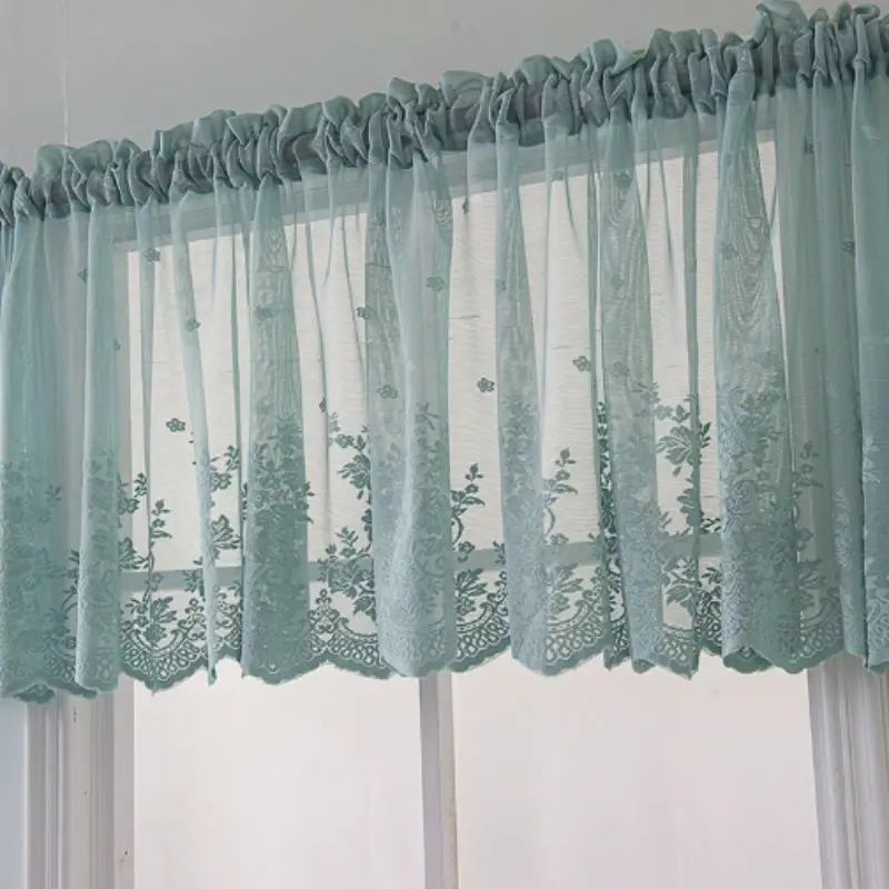 Lace Floral Embroidered Semi-Transparent Curtain, Kitchen Coffee Shop Restaurant Bathroom Decor, Elegant Window Treatment