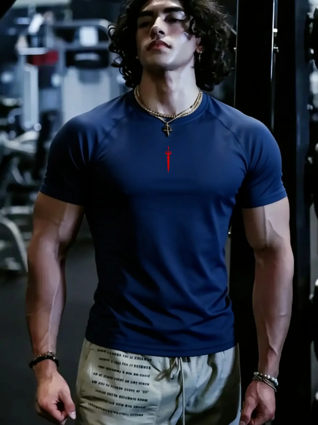 Men's Sporty Fitness T-Shirt, High Elasticity Quick-Dry Training Top, Ideal for Cycling and Workouts, Comfortable and Durable