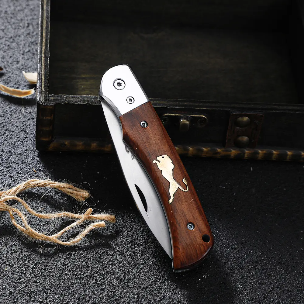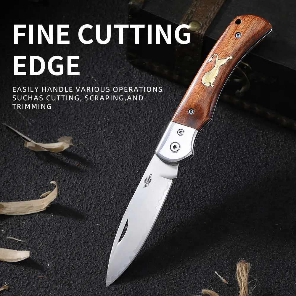 Three-in-one steel solid wood folding knife, high hardness outdoor pocket knife TS40