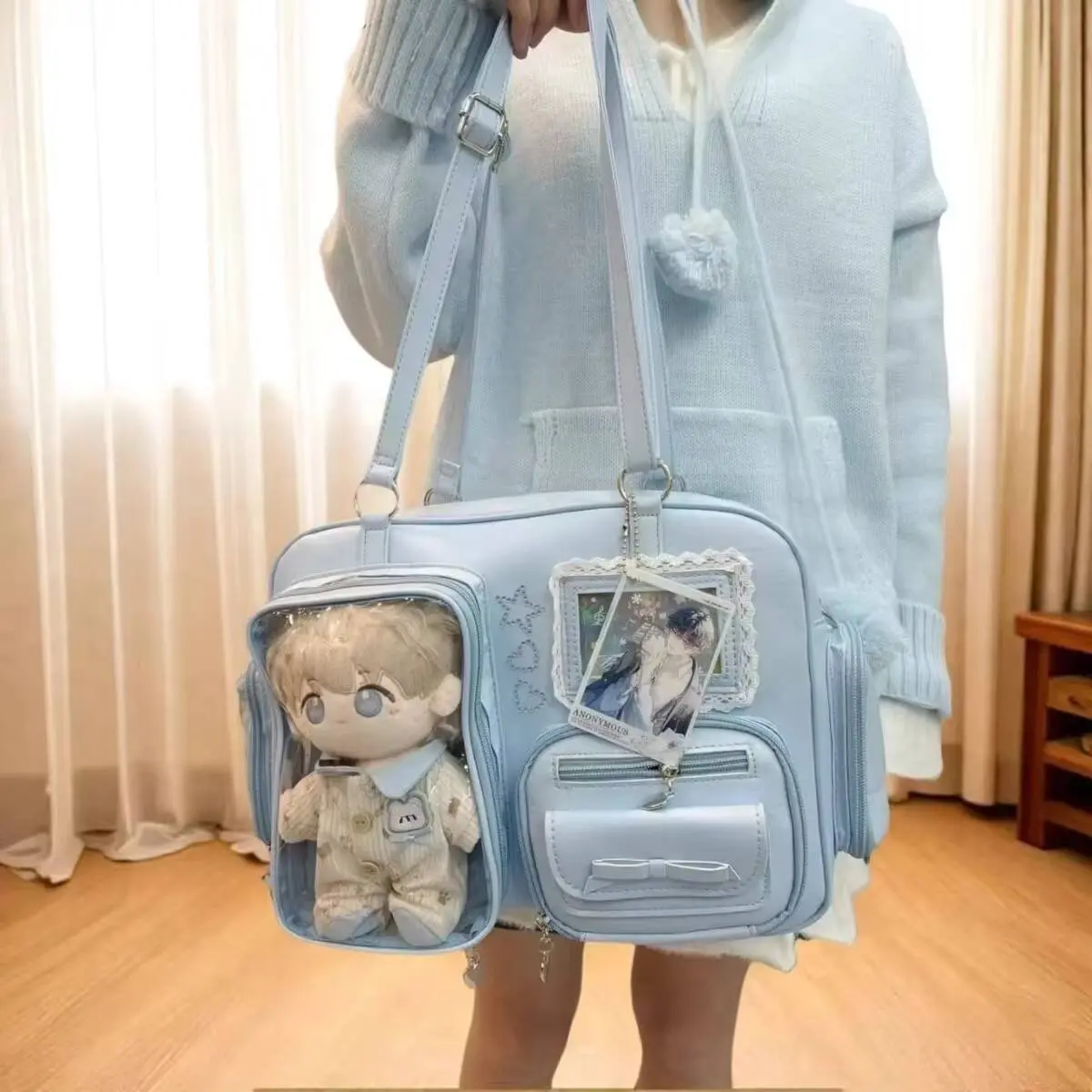New Y2K Cute Itabag Comic Exhibition Large Capacity Backpack Sweet Girl Transparent Crossbody Bag DIY Badge Display Shoulder Bag