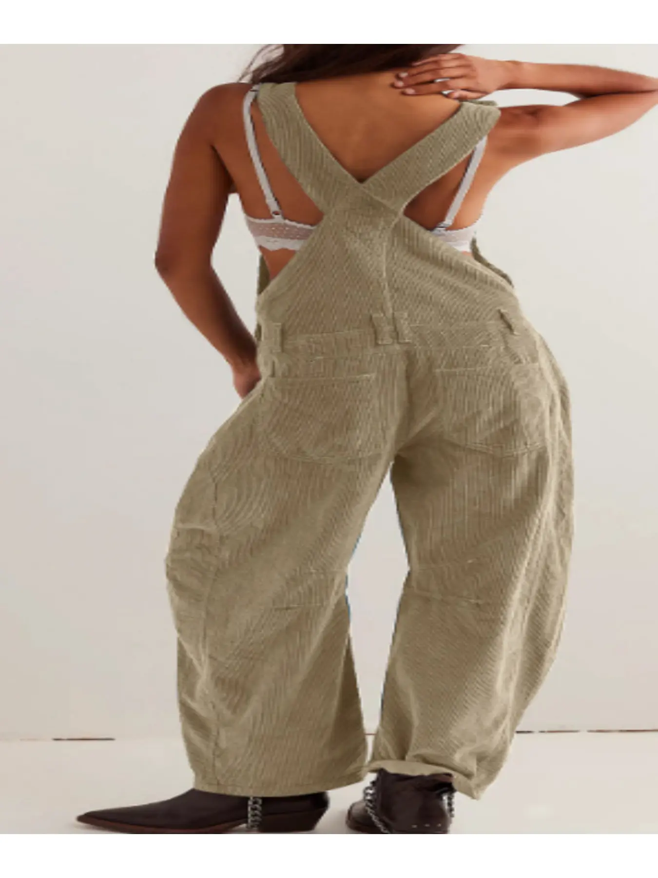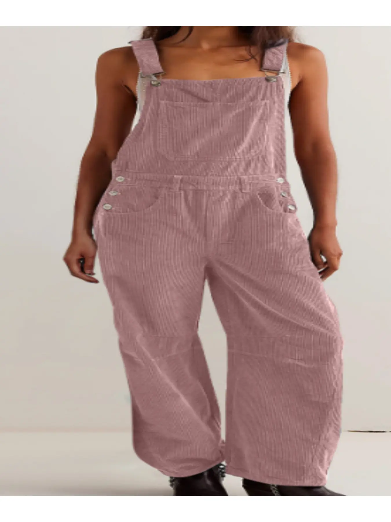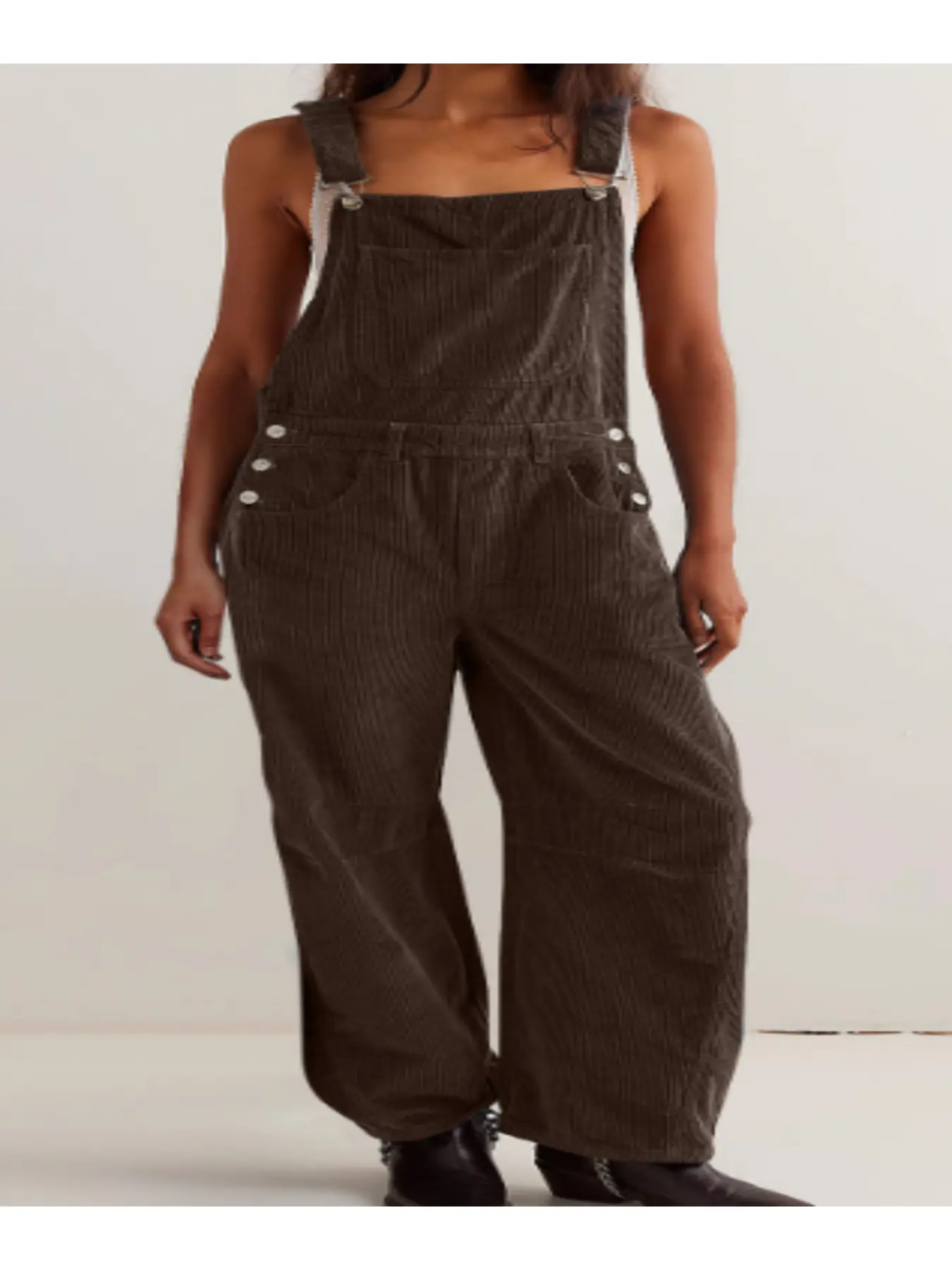Adjustable Romper Jumpsuit with Pockets Women's Corduroy Overall Barrel Wide-Leg Bib Pants Fall/Winter Casual Cotton Minimalist Everyday Fit Soft Style Basic Brown Womenswear Fitted Sleeveless Strap Strappy