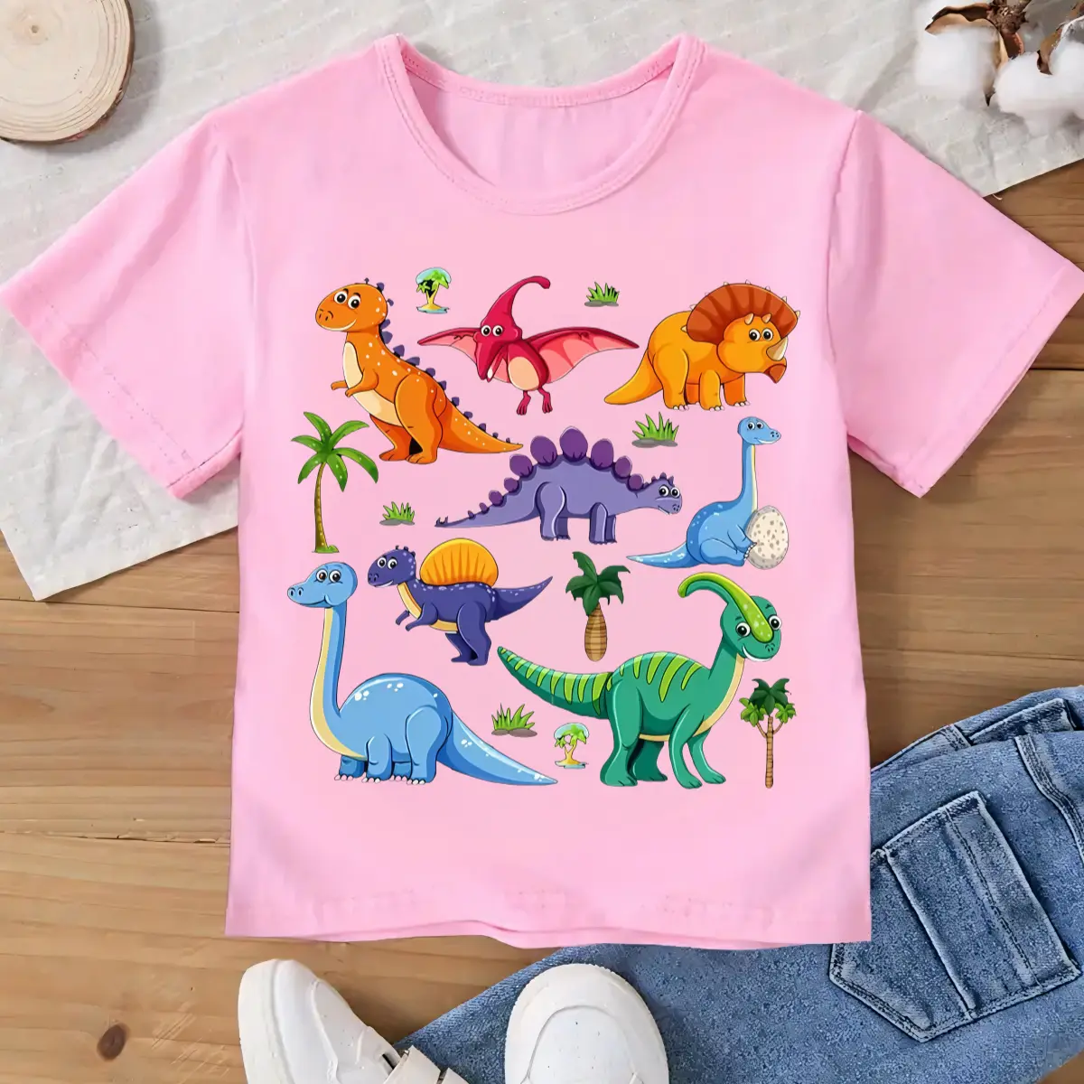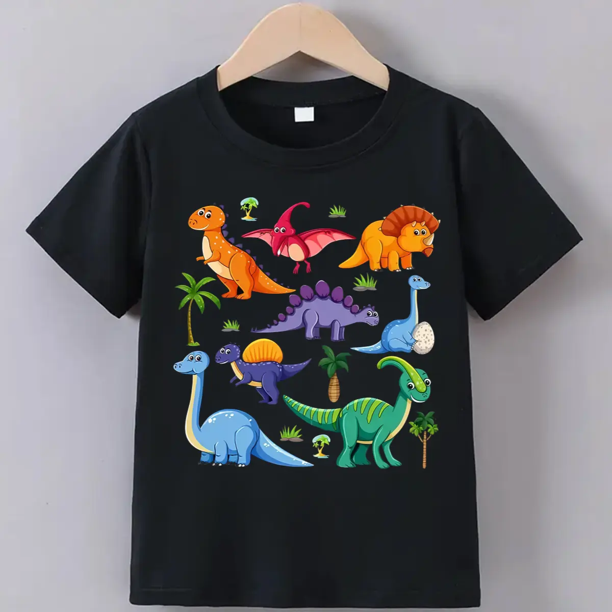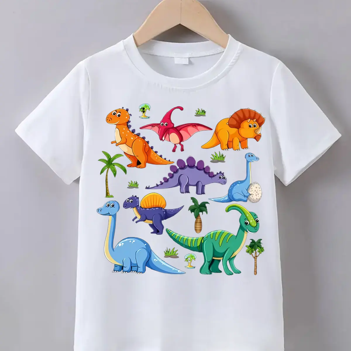 Cartoon T-Shirt for Boys And Girls Dinosaur Pattern Breathable And Comfortable Short Sleeve Round Neck Top 1-8 Years Old Summer Wear