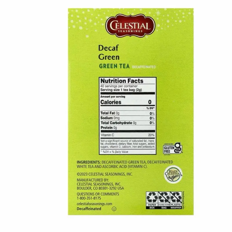 Enjoy the gentle, soothing taste of decaffeinated green tea without the caffeine. Carefully harvested from premium tea leaves, this decaffeinated green tea delivers all the natural antioxidants and subtle flavors of traditional green tea, making it perfect for any time of day.