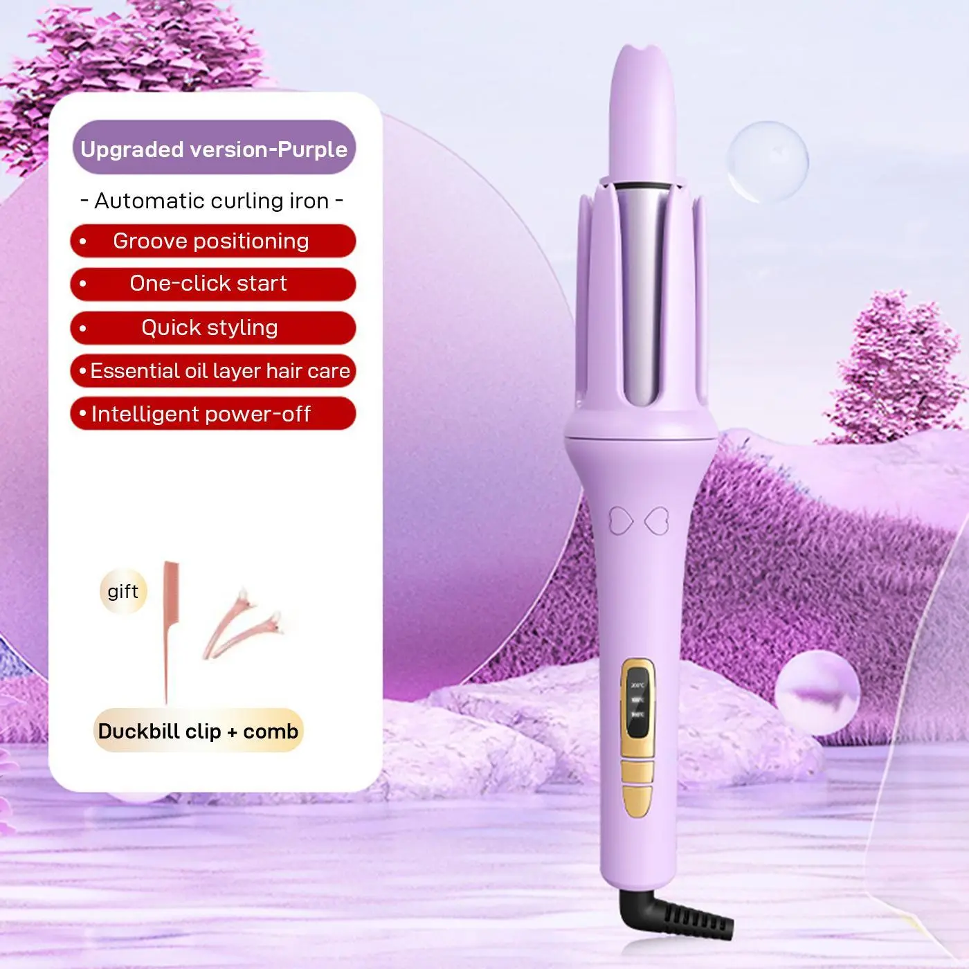Pink/Purple 32mm(1.25in) Automatic Hair Curler Iron with LED Display - Ceramic Heating, 4 Heat Settings, Tangle-Free, Burn-Proof, 110V, French Curl Tool for Lazy People, No Hair Sticking Flawless curling irons hair curler diffuser curly hair