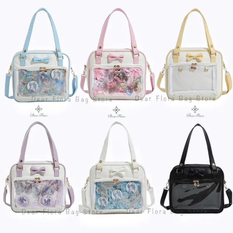 Y2K Cute Bow Ita Bag Girl Transparent Shoulder Bag Women Fashion Crossbody Messenger Bag Ladys DIY Badge Tote Bag Lolita Handbag