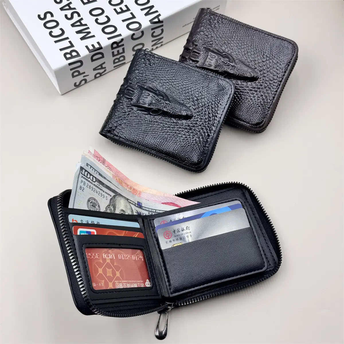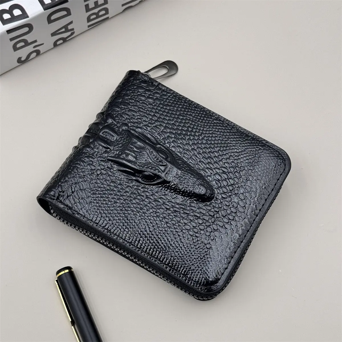 Men's Short Crocodile Zip Wallet PU Leather Bifold with Multiple Card Slots Large Capacity Coin Purse & Cash Organizer for Everyday Carry