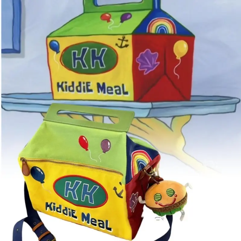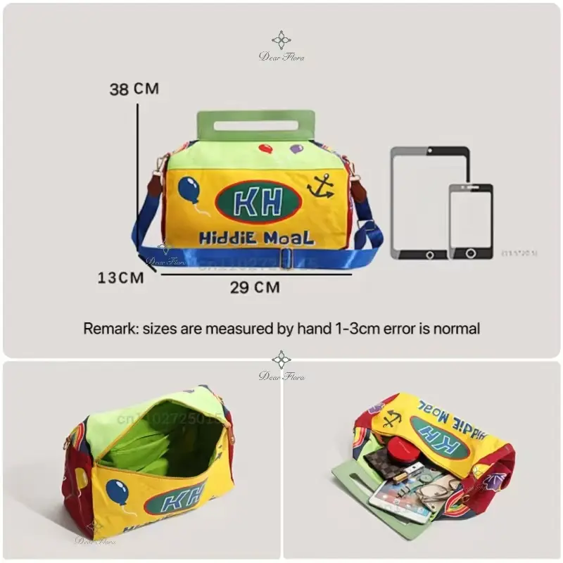 Y2K Cartoon Shoulder Bag Anime Underarm Funny Crossbody Tote Bag Cute Canvas Messenger Zip Handbag Kawaii Travel Bag Storage Bag