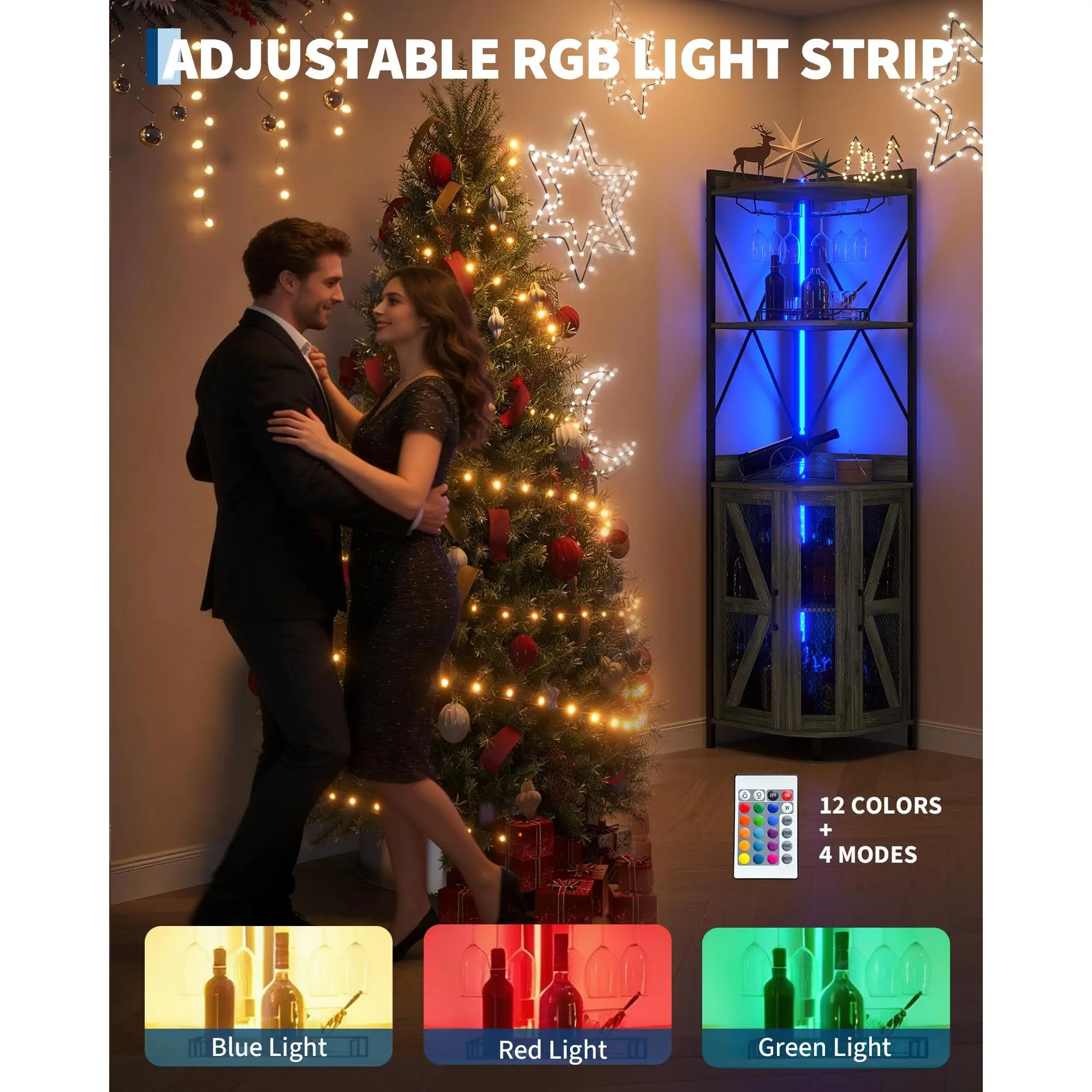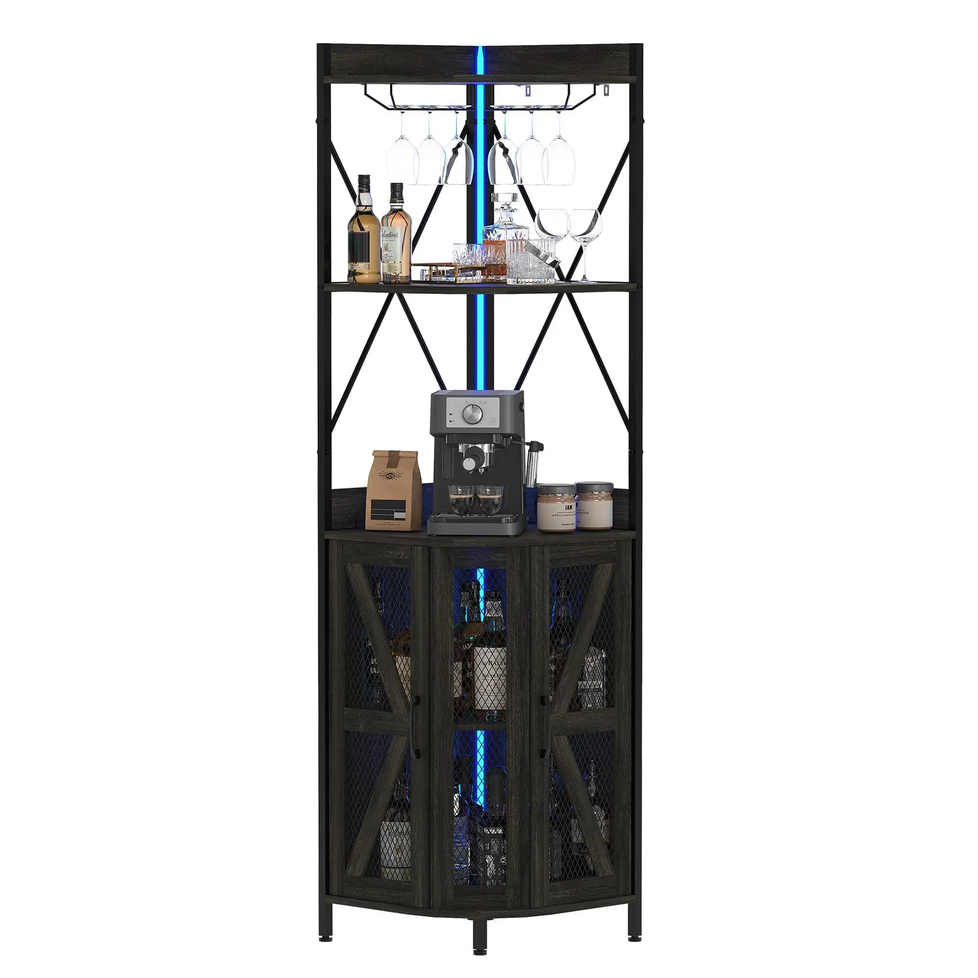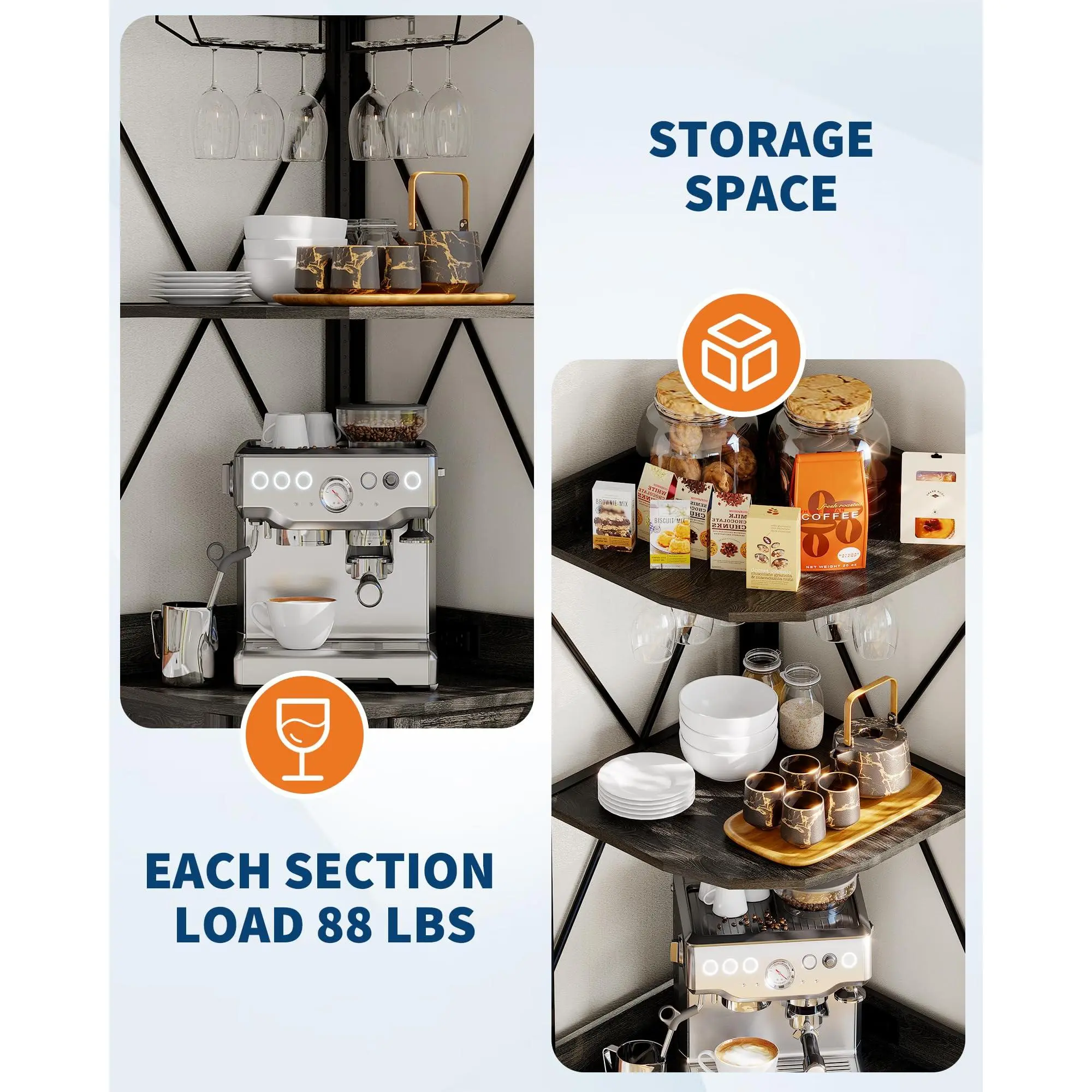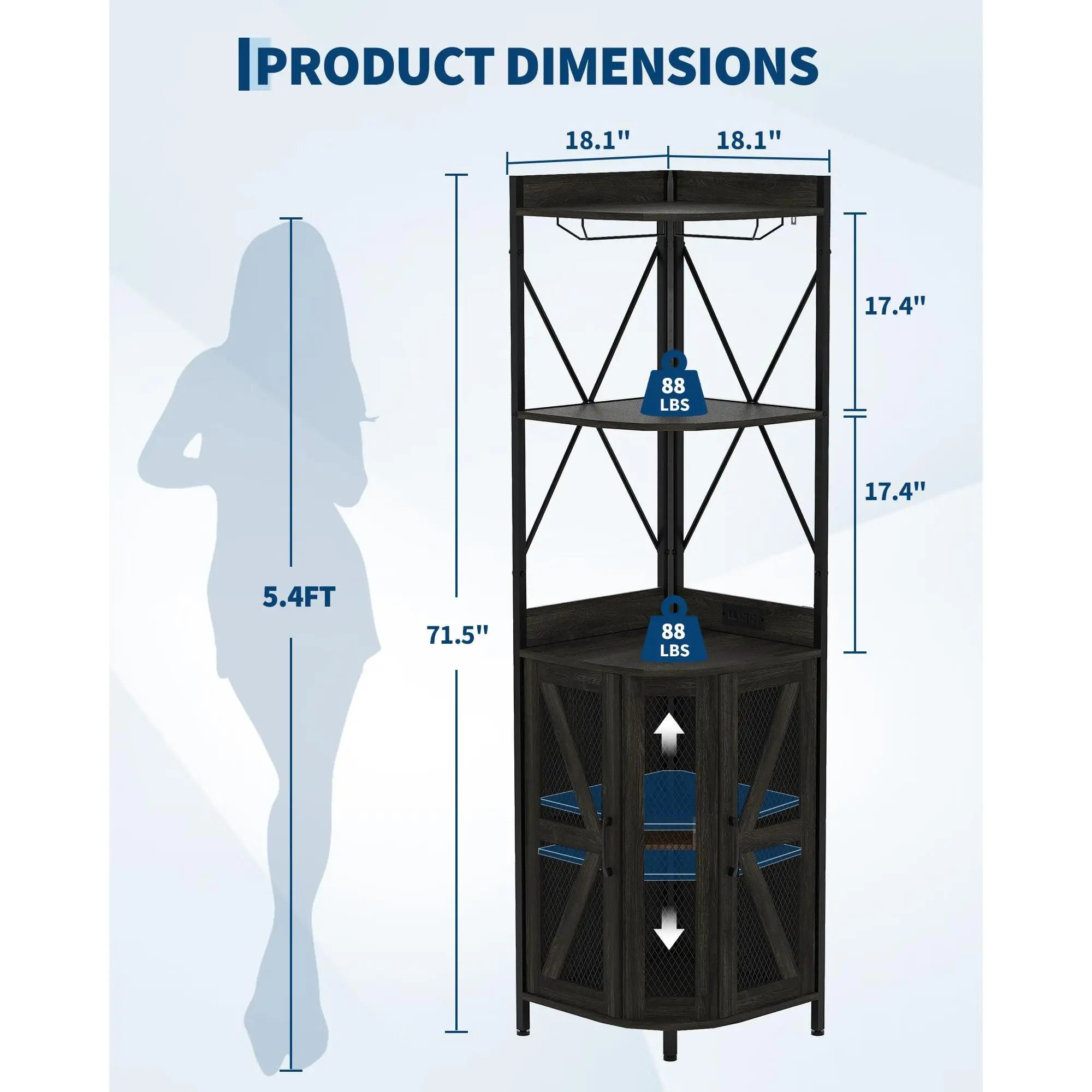 · 🍾Versatile Corner Design🍾🍾With a vertical corner structure and industrial-style design, this multifunctional corner bar cabinet maximizes unused corner space and blends seamlessly with most home décor styles. Perfect for kitchens, living rooms, dining areas, or entertainment spaces, it functions as a wine cabinet, coffee bar, or display storage unit.