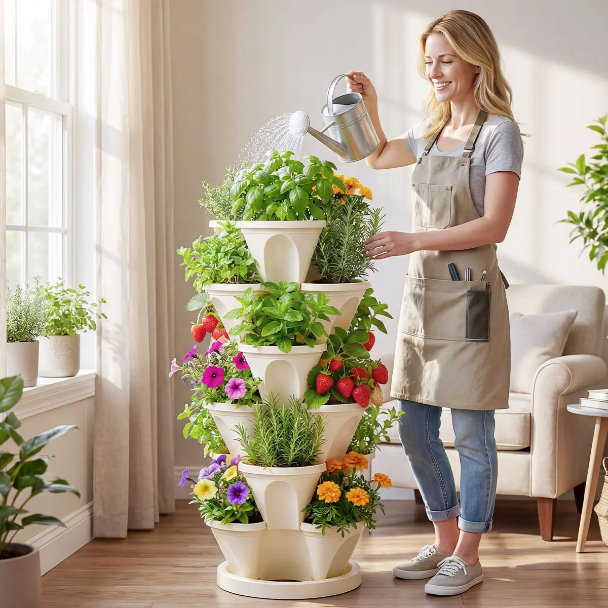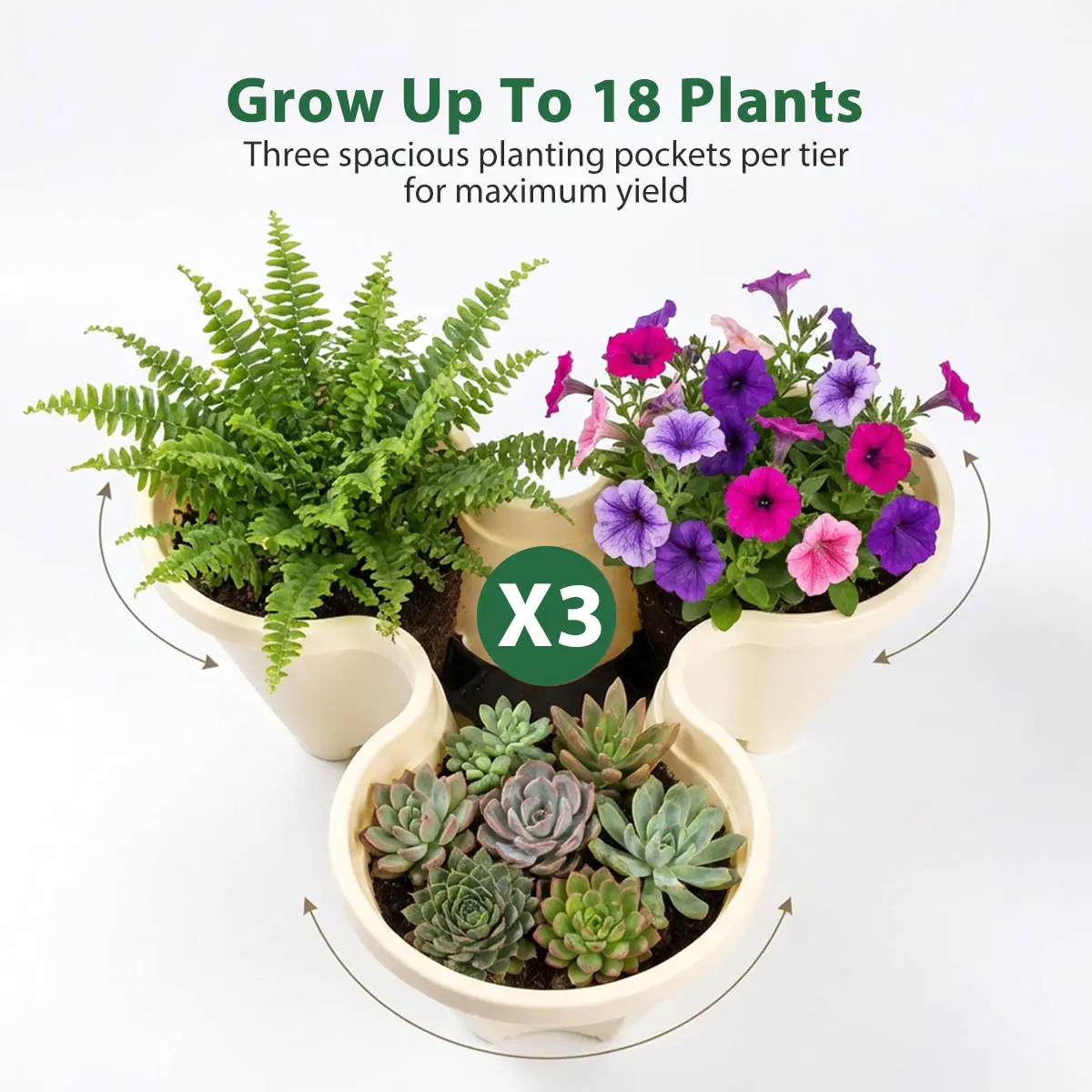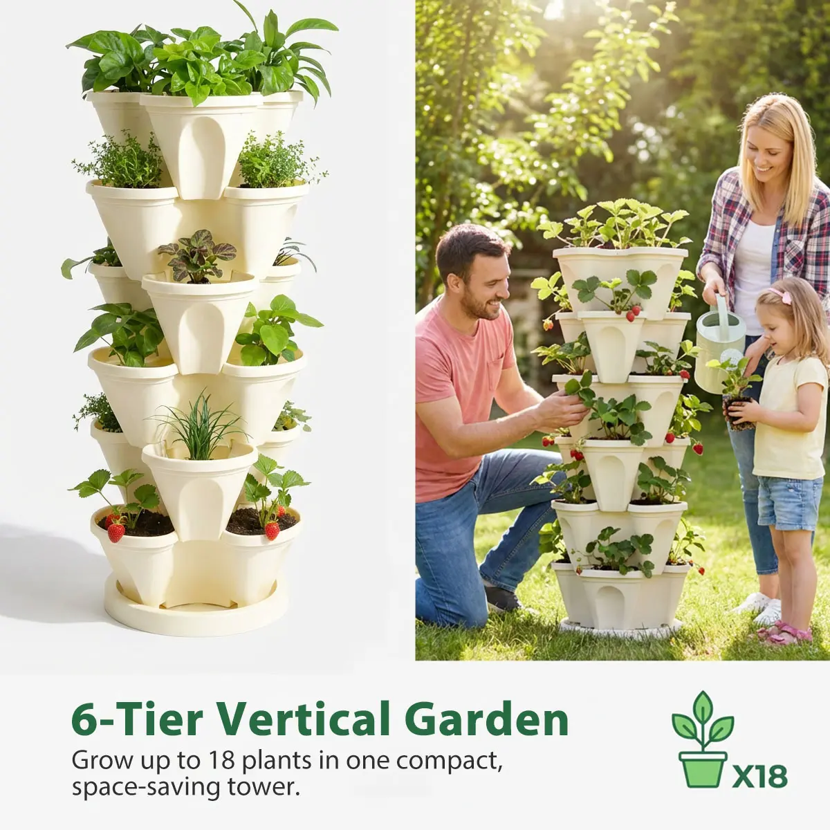 ·6-Tier Design: Each tier has three planting pockets, totaling 18 spots.