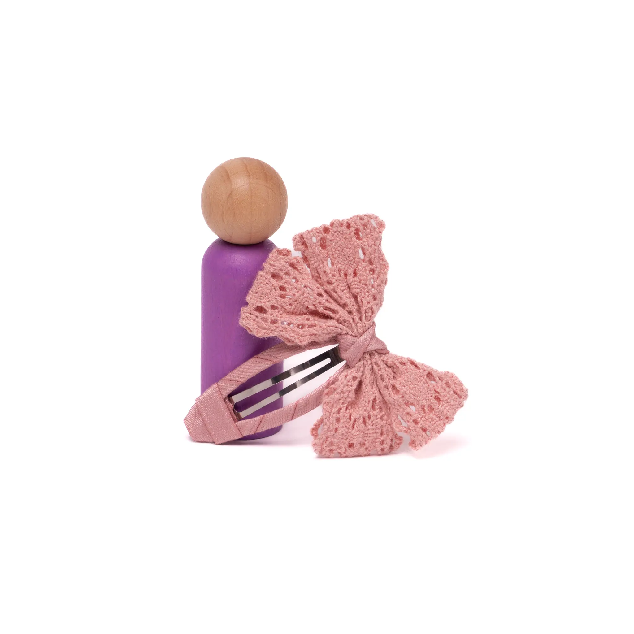 Soft and romantic, our lace pink butterfly hair clip features a delicate crochet-style lace bow for extra texture and charm. The fabric-covered snap base glides in easily and stays comfy all day—no snagging, just sweet hold.