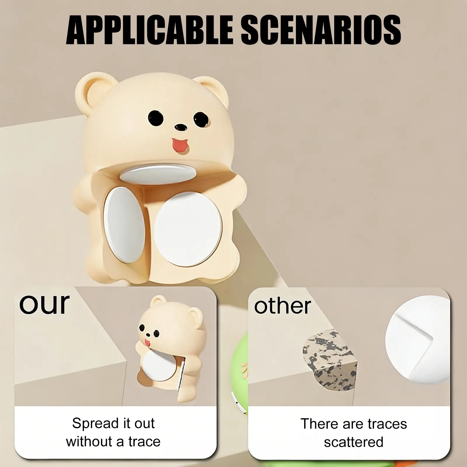 No tools, no mess, just stick and go! Installation is so easy, you can babyproof the entire house during a single naptime. Clean the corner with a damp cloth. Peel off the backing from the strong self-adhesive strip. Press firmly onto the corner and hold for a few seconds. These compact bear guards fit snugly on coffee tables, nightstands, vanities, and sinks.