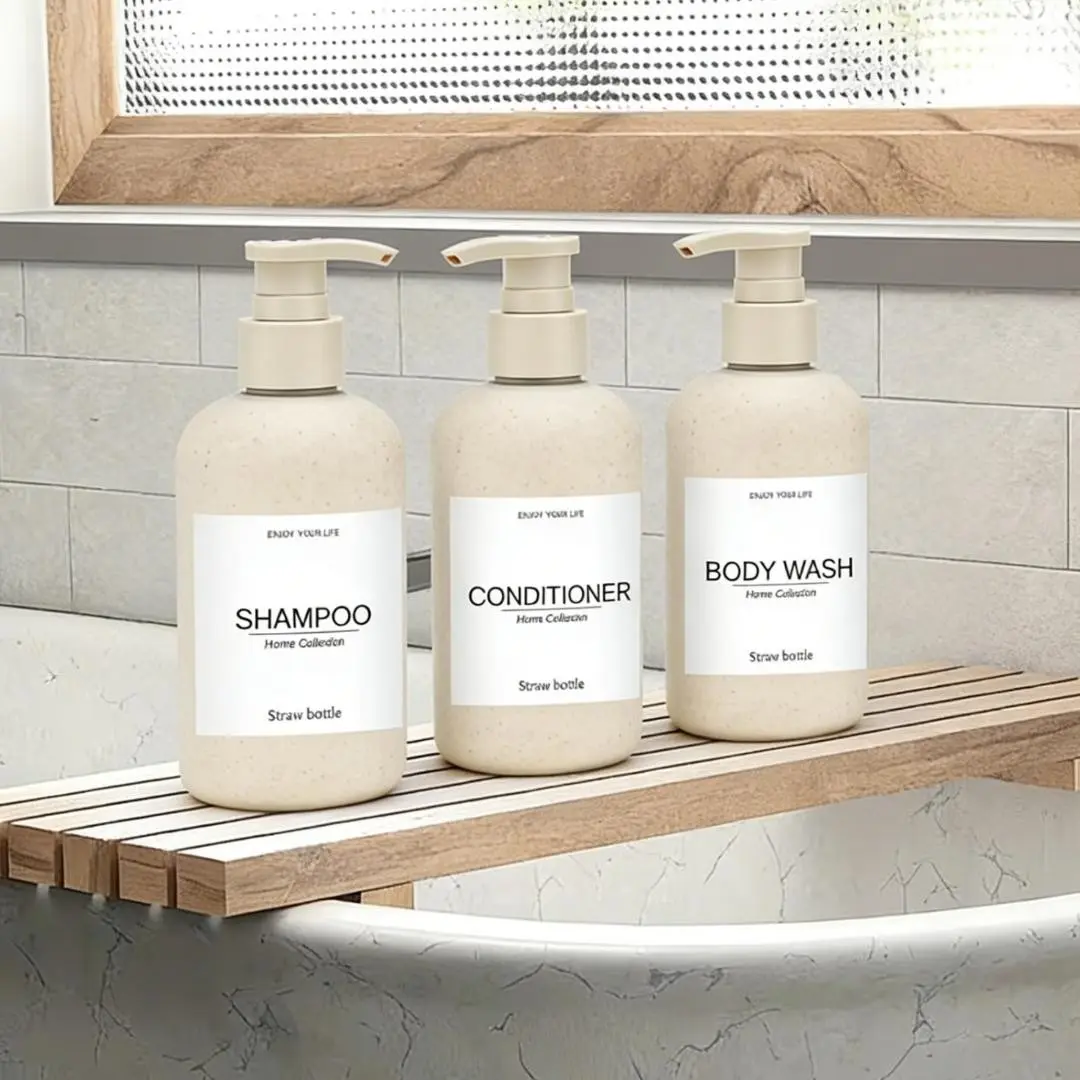 The set includes 3 empty pump bottles, corresponding to shampoo, conditioner, and shower gel, precisely matching your complete bathroom care needs. No need to buy separately or worry about matching; simply open the box to fill and use. Easily categorize and organize your bathroom care products, saying goodbye to cluttered brand bottles.