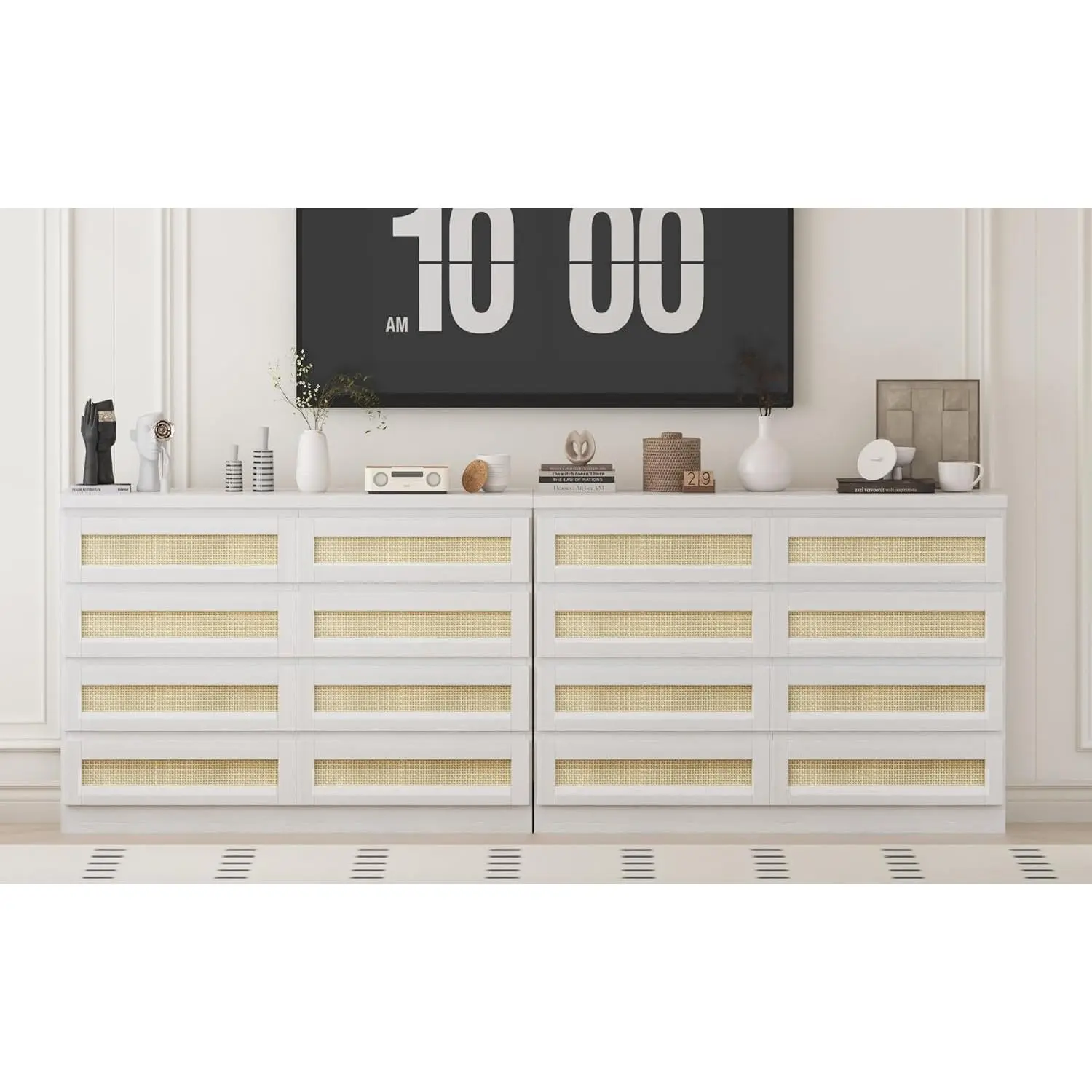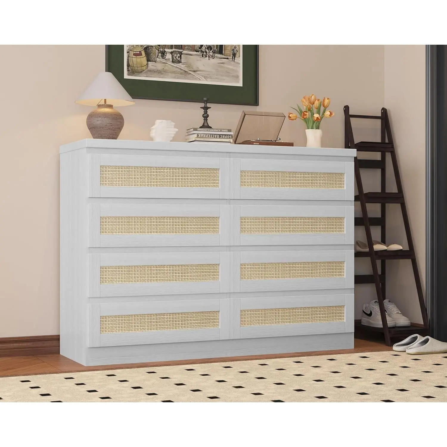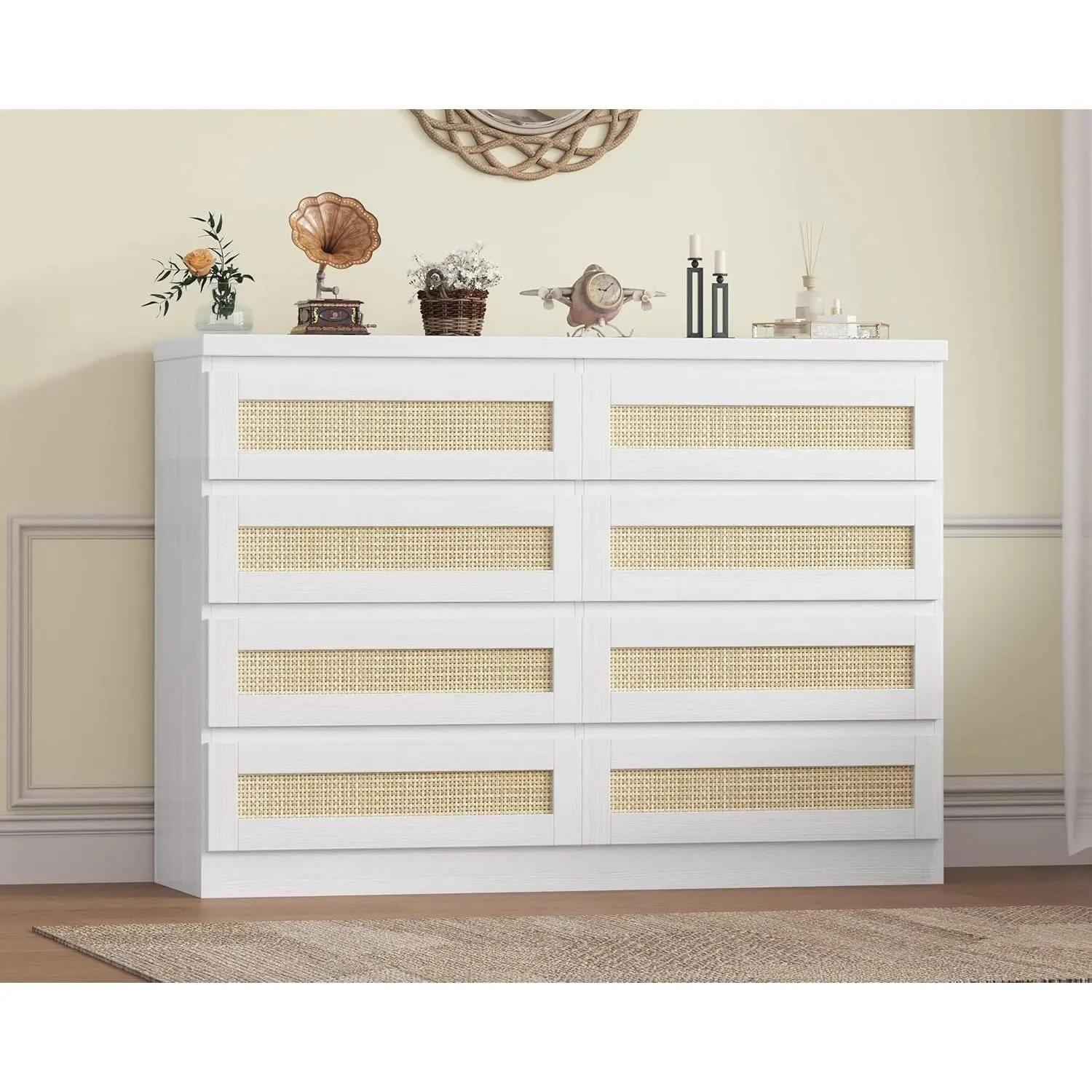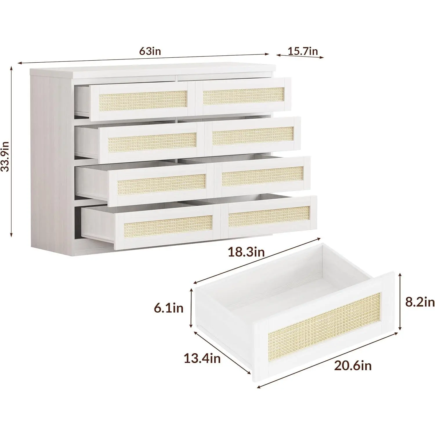 · 1. Elegant Rattan Design for Timeless Charm:Featuring woven rattan accents, this 8 Drawer Rattan Dresser for Bedroom blends boho and farmhouse styles with a simple, elegant look. The combination of a contemporary wood frame and chic rattan detailing adds warmth and texture, making it a charming addition to bedrooms, living rooms, porches, or entryways—enhancing any home decor with its unique aesthetic.