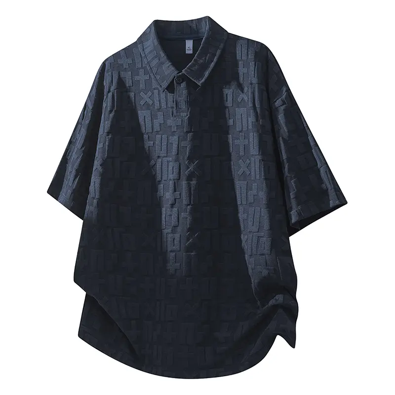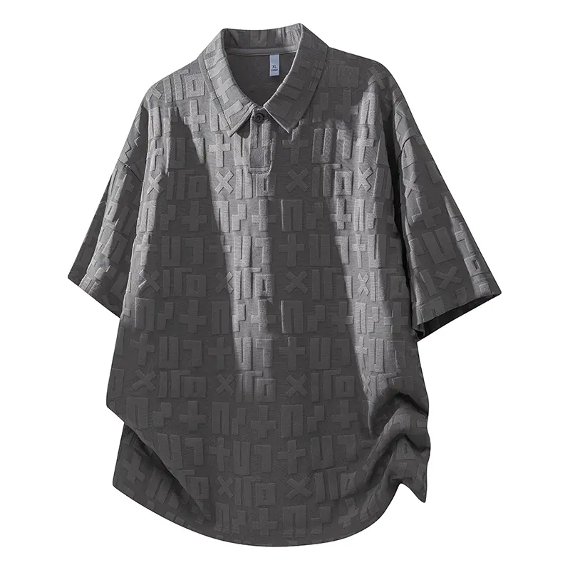 Men’s solid-color retro jacquard textured polo shirt with a turn-down collar; stylish casual athletic T-shirt with buttons; simple, versatile, comfortable, and breathable—ideal for work commutes, outdoor sports, and everyday home wear.