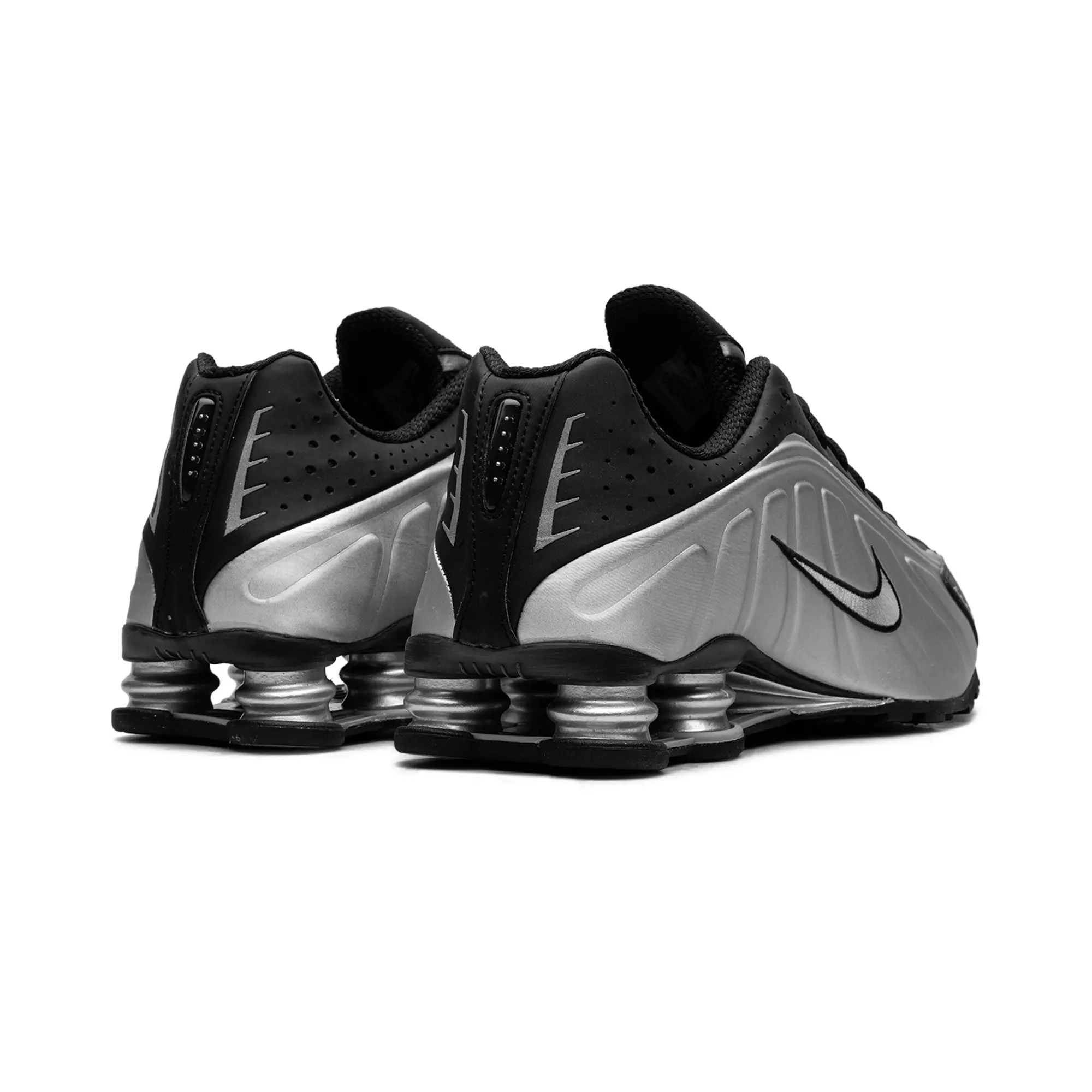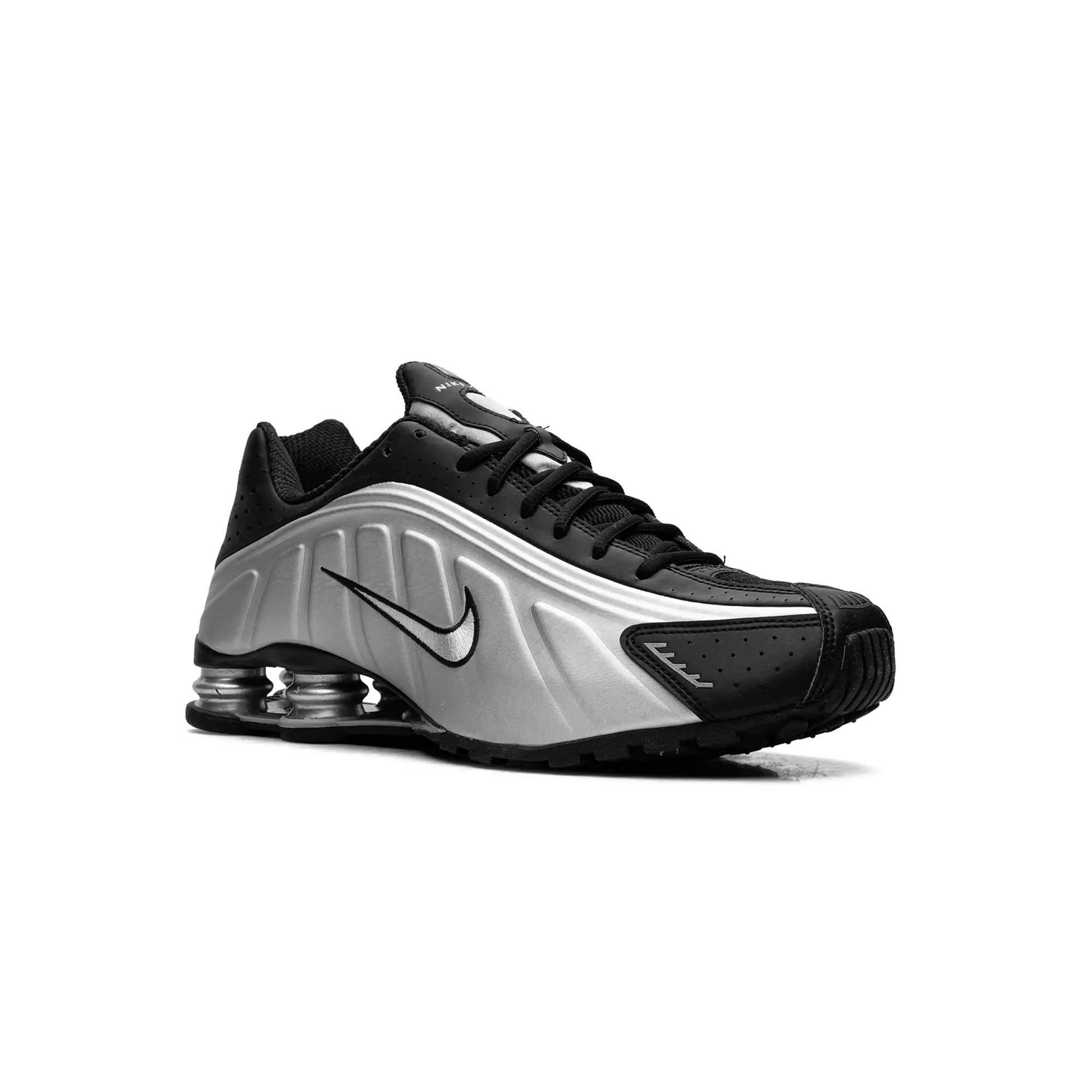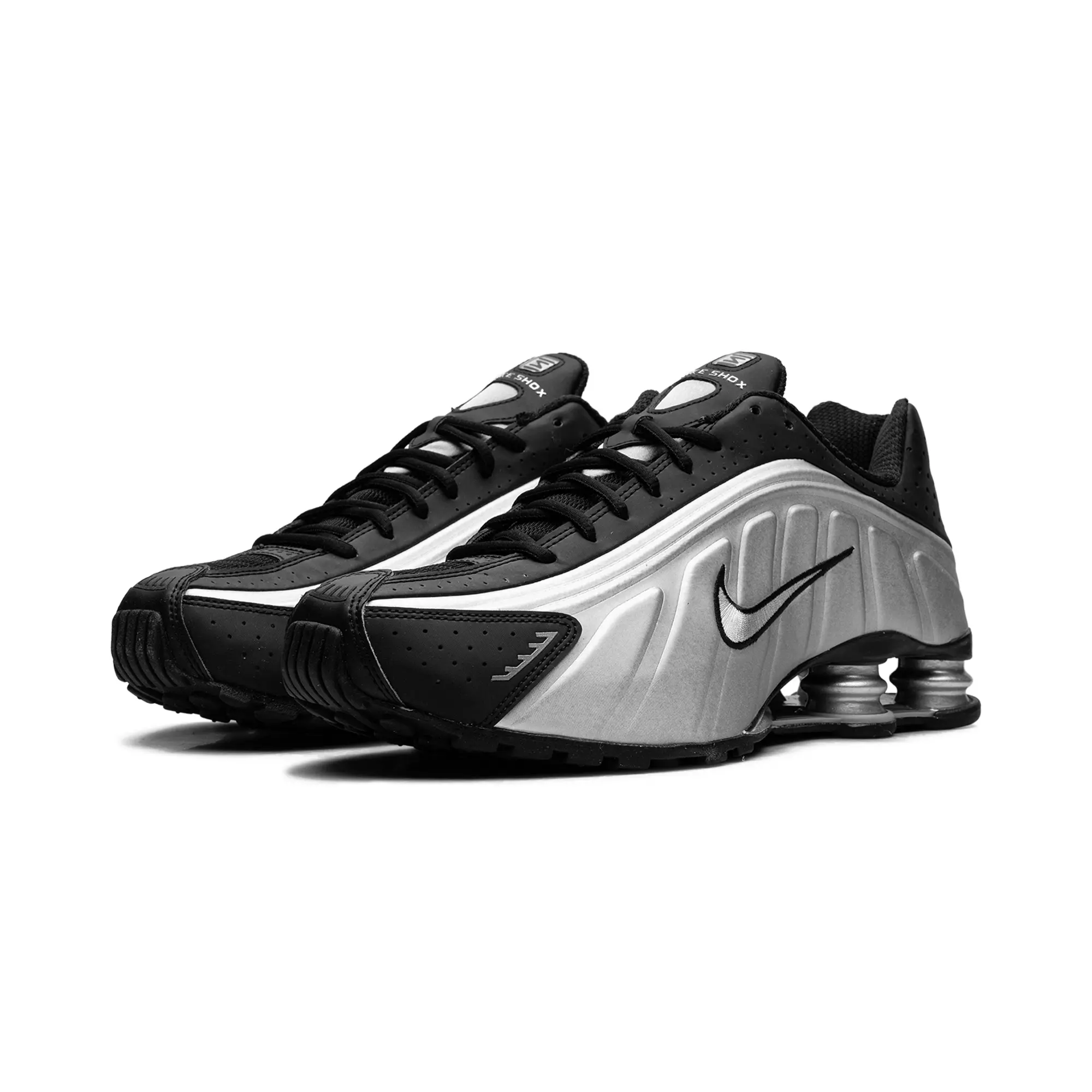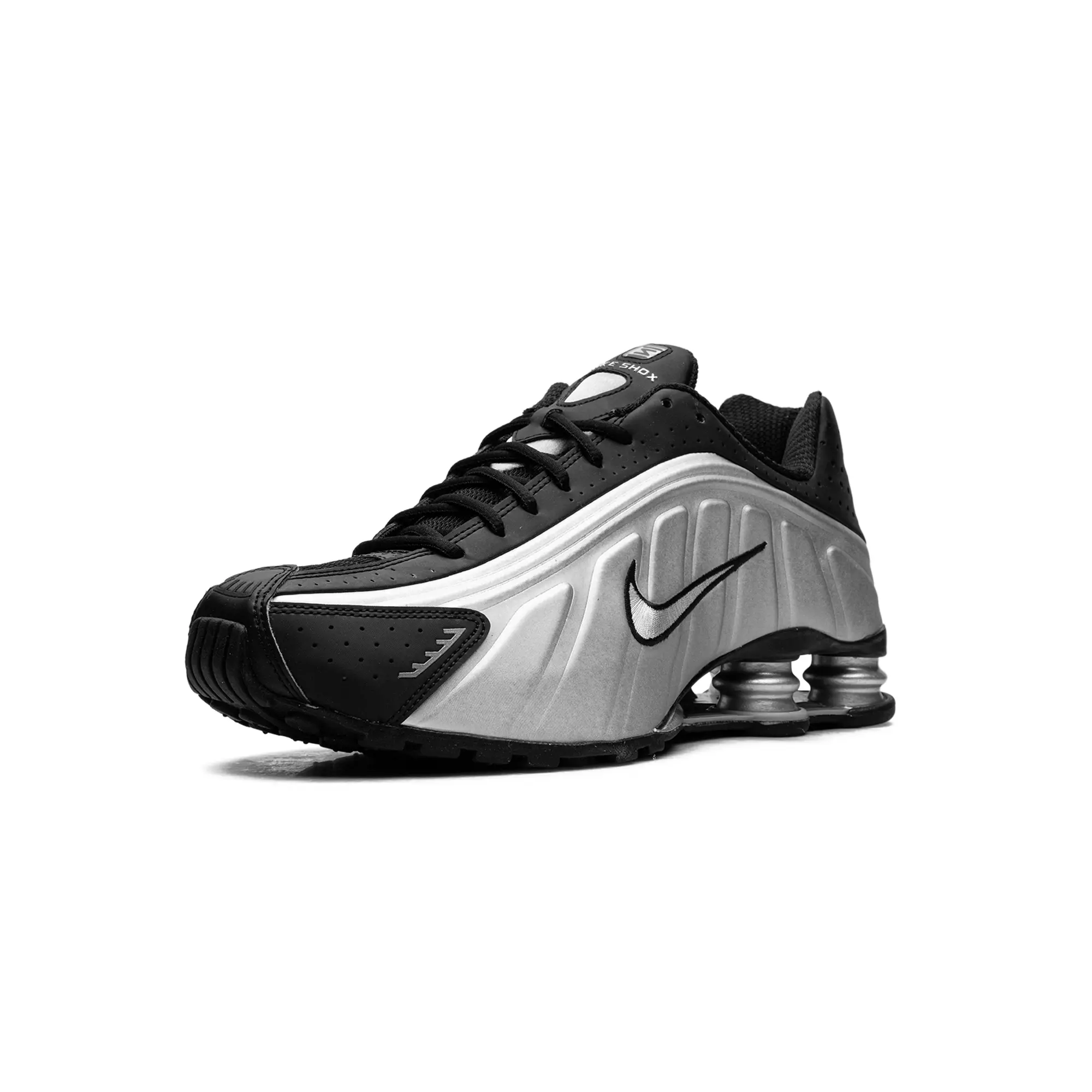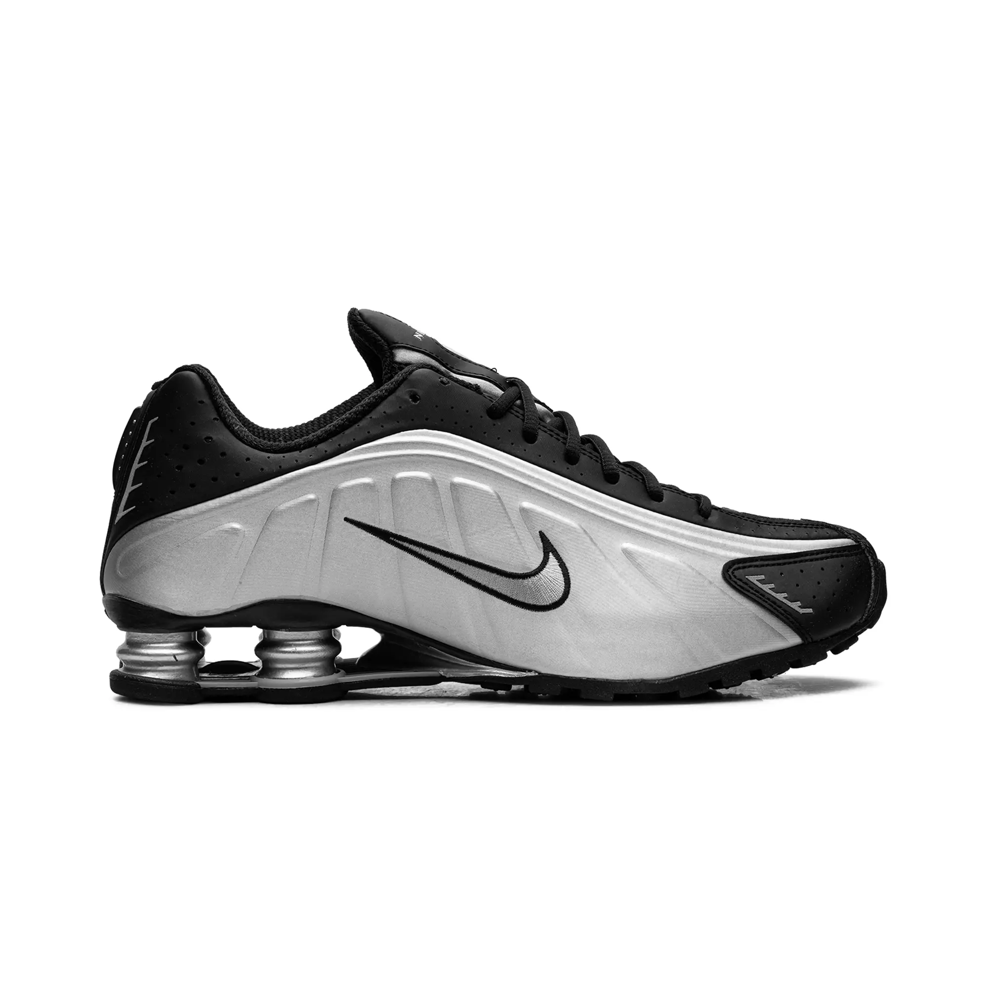 The Nike Shox R4 "Metallic Silver / Black" delivers a clinical, high-status execution of the turn-of-the-century mechanical masterpiece, masterfully blending "Alpha Project" heritage with a radical, industrial technicality. This iteration features a premium landscape of shimmering metallic silver synthetic panels and structural jet-black overlays, providing a light-reflective, multi-dimensional foundation for the model’s iconic aerodynamic anatomical profile. The design is defined by its explosive strike, utilizing specialized perforated detailing and a contrast-stitched Swoosh that injects a layer of high-octane luxury into the deconstructed performance build. Grounded by the legendary four-column Shox platform in a matching silver finish for elite impact protection and finished with a rugged black traction outsole, this release successfully pairs the R4’s aggressive DNA with a sophisticated, "Cyber-Noir-Elite" aesthetic.