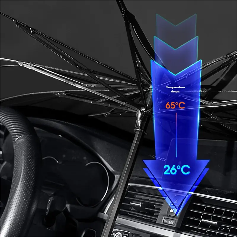 • 4、Convenient and practical: The car umbrella can be quickly opened and stowed, and can be stored in a complimentary small bag after being folded, which is convenient to store anywhere in the car.