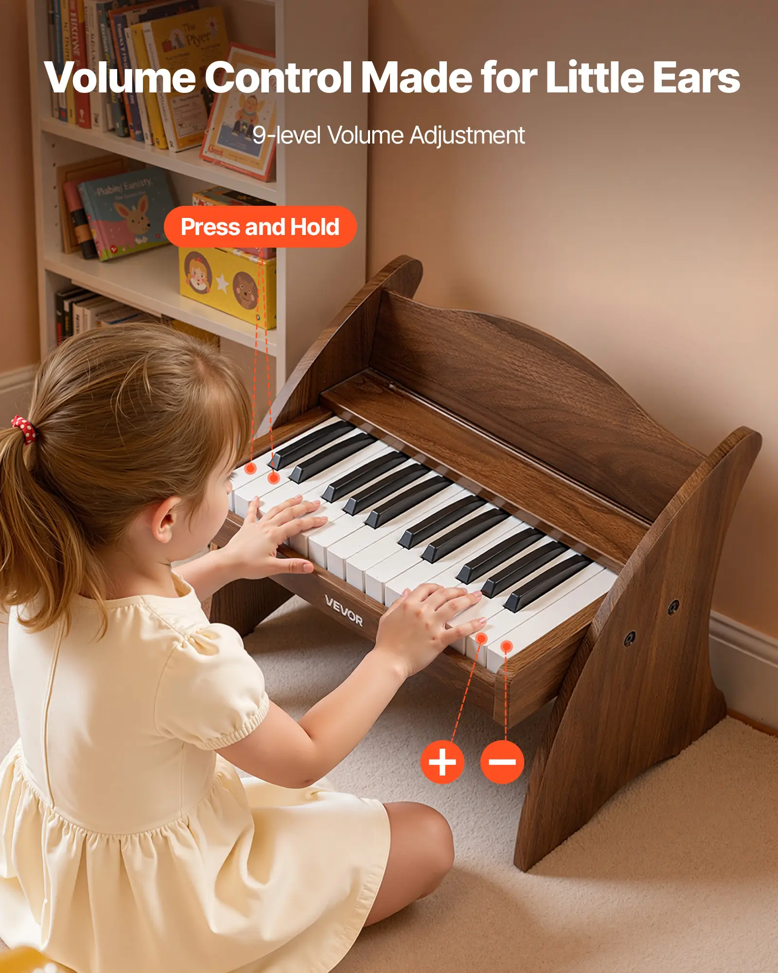 Adjustable Volume Control: Volume control keeps practice comfortable for families and apartment living. Set low for quiet time or increase for more expression, gentle enough for young ears while playing their children's piano