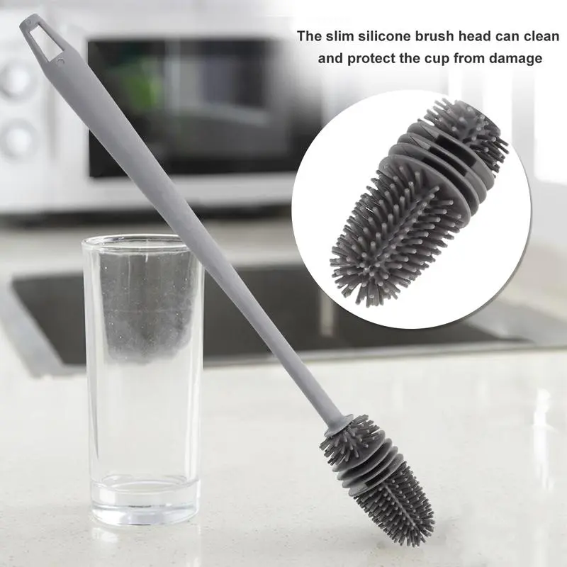 ·Versatile Cleaning Solution: This long-handled silicone bottle brush is perfect for cleaning vases, sports bottles, and glassware. It's ideal for narrow-neck containers, ensuring thorough cleaning. 🧼