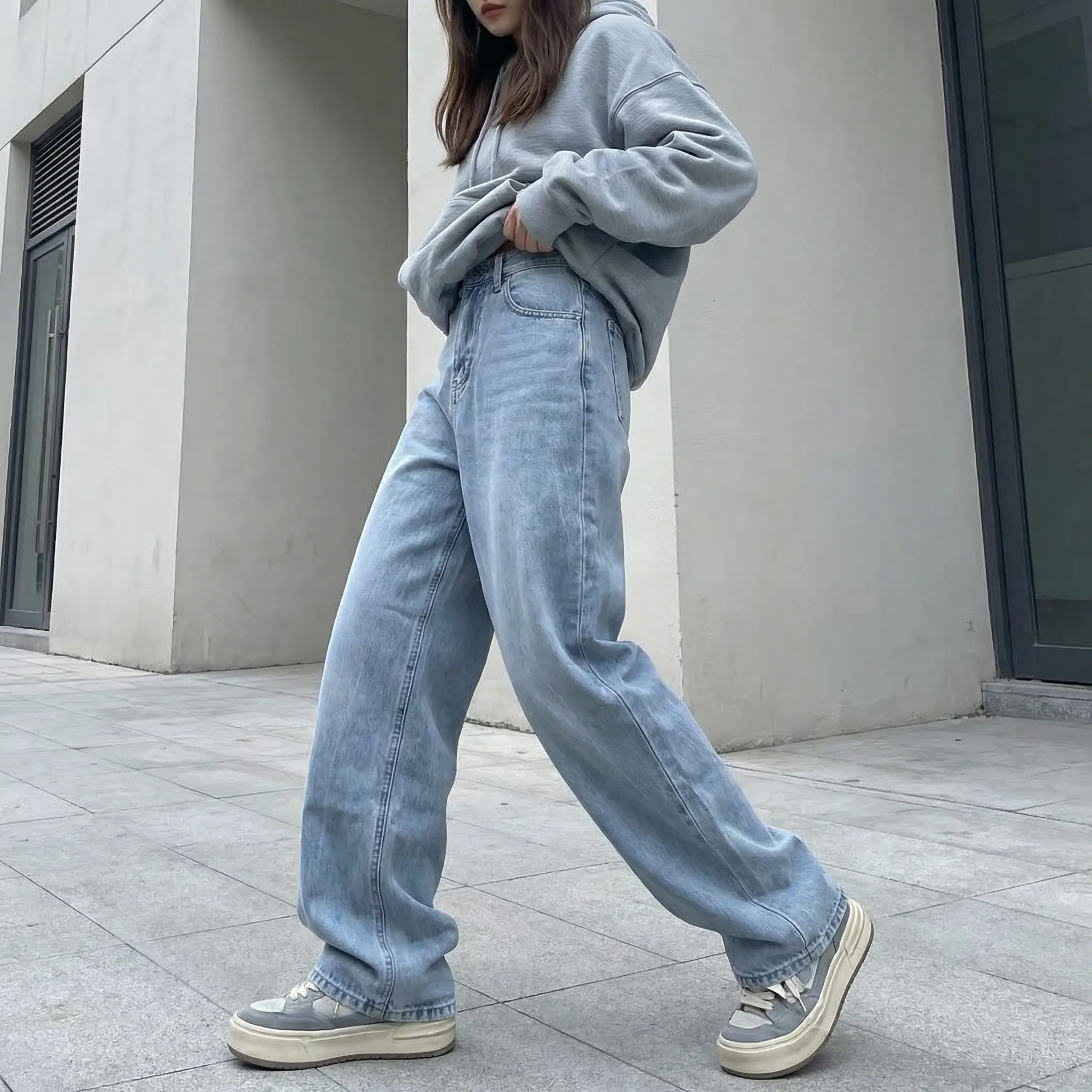 ·Comfortable High-Waisted Design: These jeans offer a relaxed fit with a high-waisted style, perfect for casual wear. The baggy wide-leg cut adds a trendy, loose silhouette.