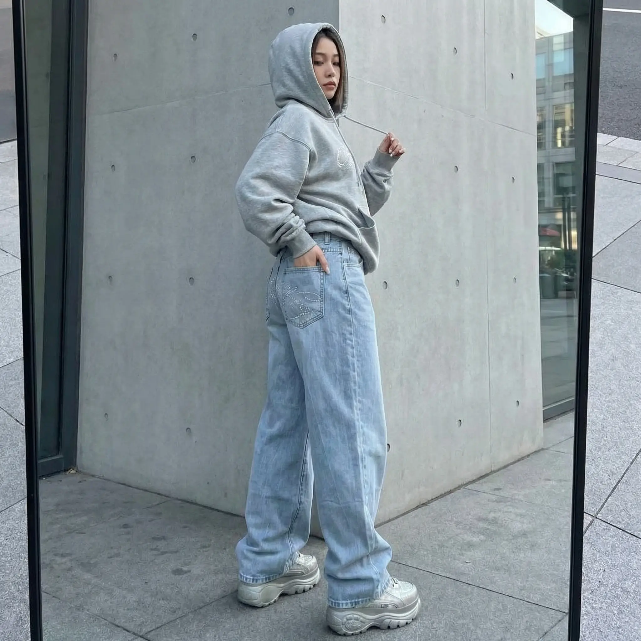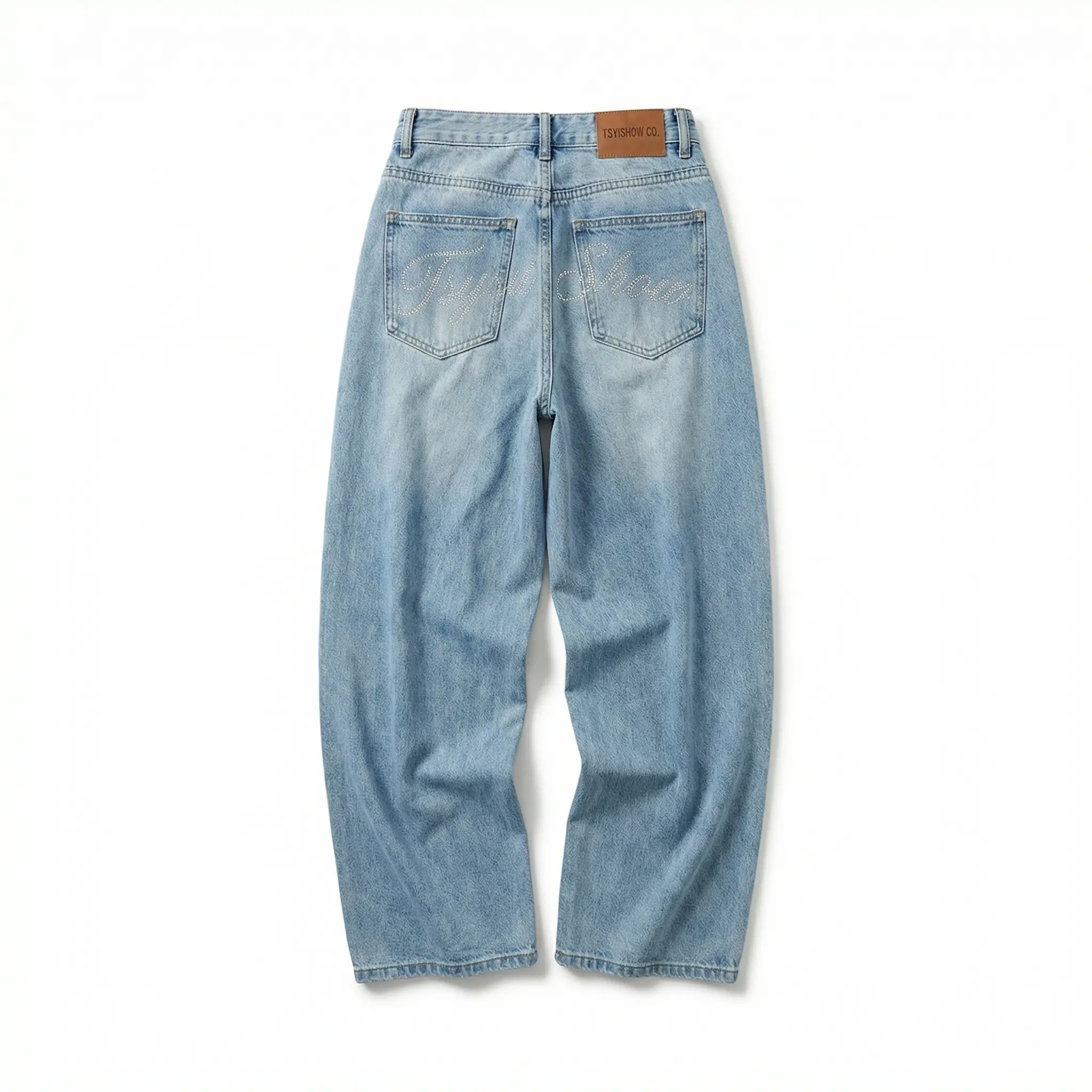 ·Y2K Rhinestone Graphics: Adorned with Y2K rhinestone graphics, these jeans bring a touch of retro flair. Ideal for hip-hop and streetwear enthusiasts.