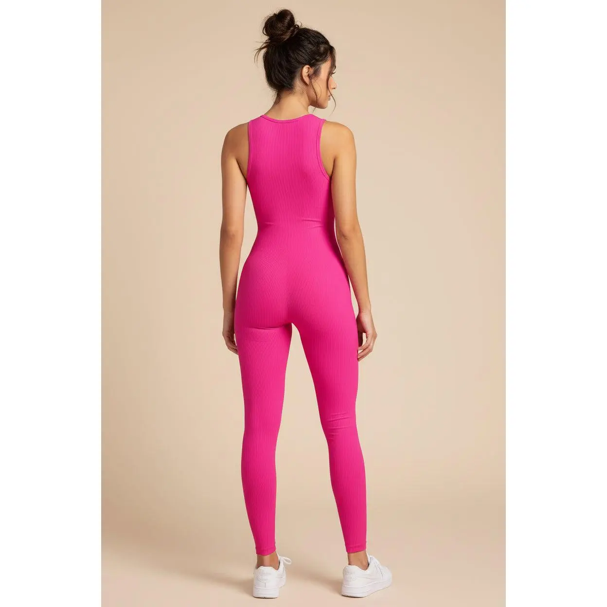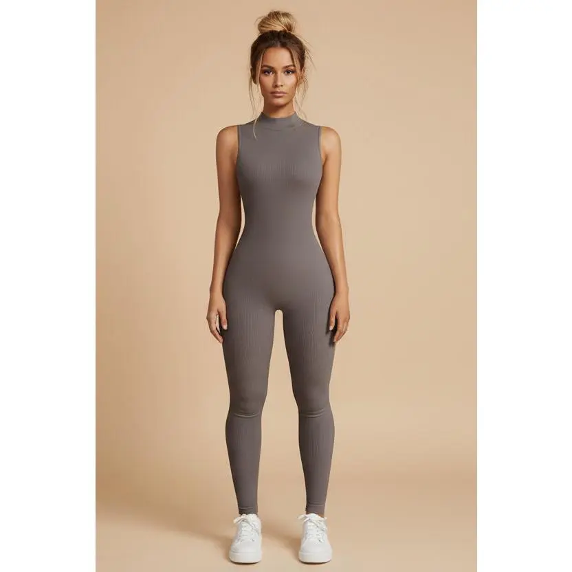 Designed for effortless movement and everyday comfort, this sporty knit jumpsuit delivers a streamlined, modern look perfect for warm‑weather wear. With a sleek one‑piece silhouette and minimalist solid design, it’s ideal for workouts, athleisure styling, or casual on‑the‑go days.