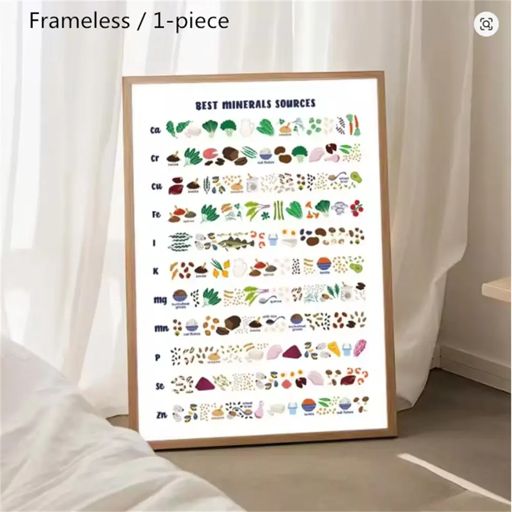 1pc Unframed Nutritious Food Vitamin Chart Minerals Canvas Poster Educational Vegetables Wall Art Pictures for Kitchen Dining Room Decor (9 different styles to choose from)