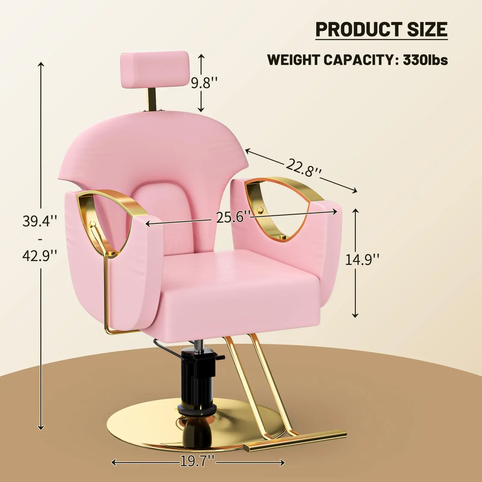 Salon Chair for Hair Stylist Reclining Hydraulic Height Adjustable Barber Chair 360°Swivel Comfortable Recliner Styling Chair, Unique Headrest Design, Pink and Gold