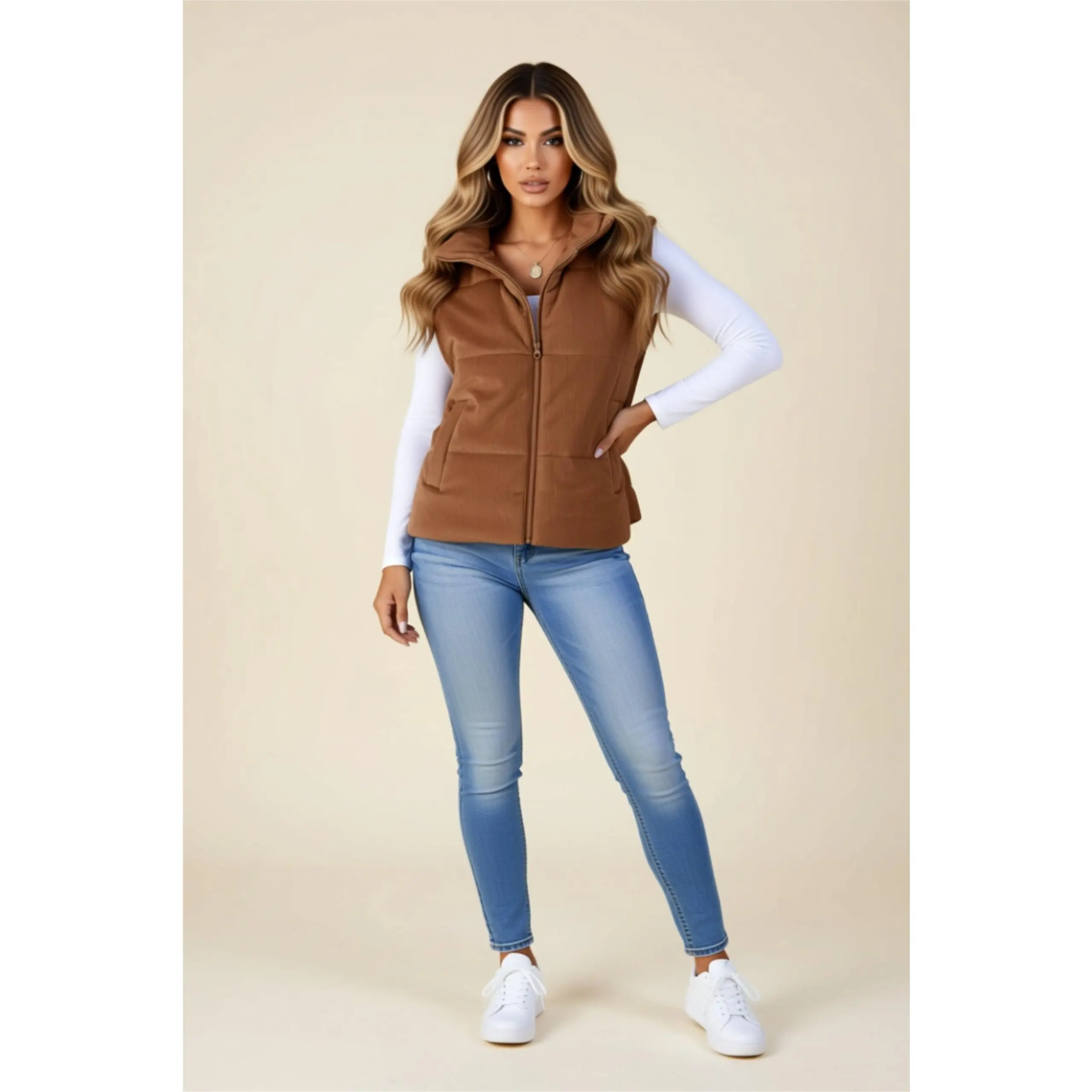 Stay cozy and stylish with our classic zip-up vest, designed for warmth and versatility. Featuring a full-length zipper, high stand collar, and functional side pockets, this vest is perfect for layering over long-sleeve tops or sweaters during transitional weather. Crafted from a premium blend of 95% polyester and 5% spandex, it offers normal thickness and a lined interior for added comfort without bulk.