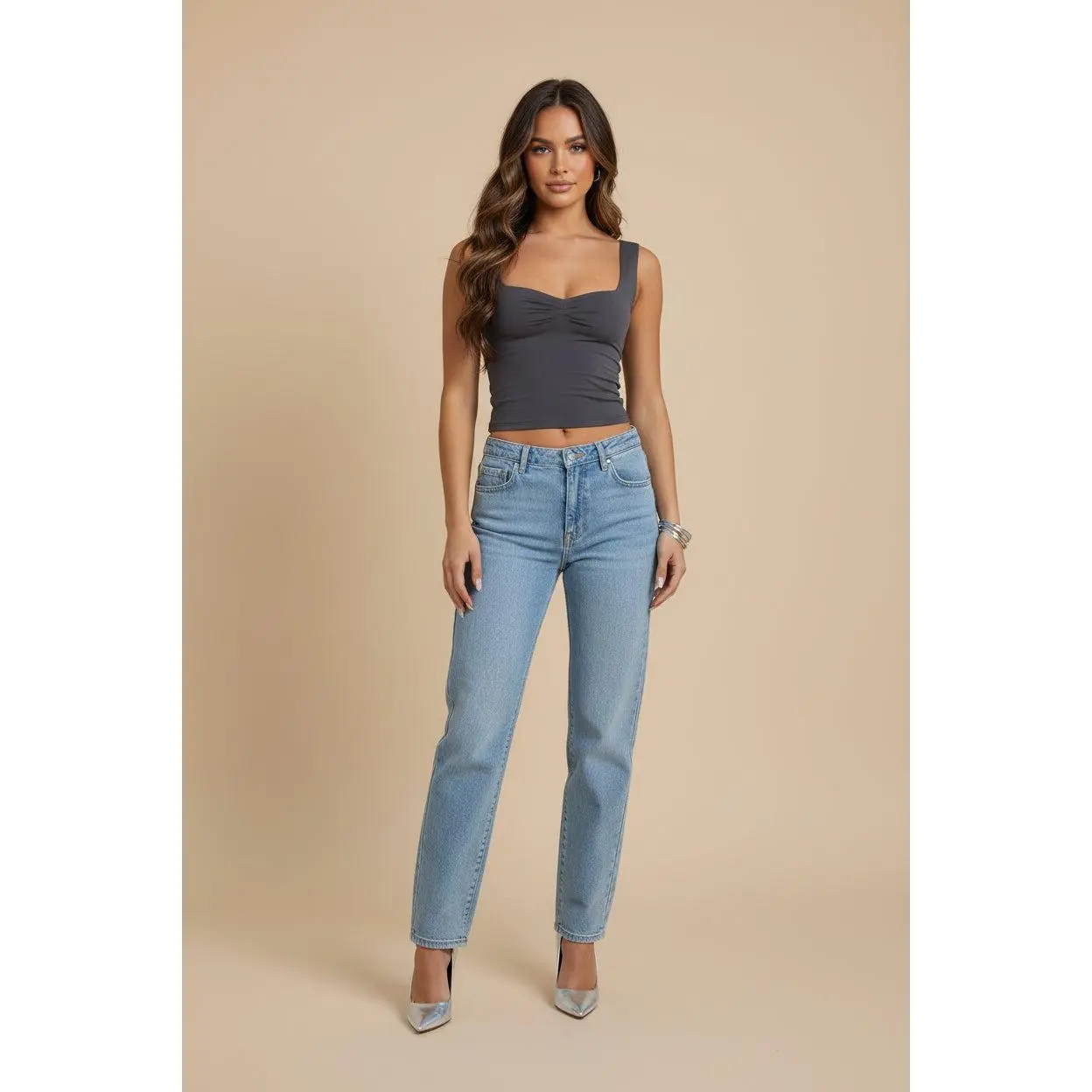 Designed to fit true to size, this versatile top pairs perfectly with high‑waisted jeans, skirts, trousers, or layered under blazers for a confident, modern finish.