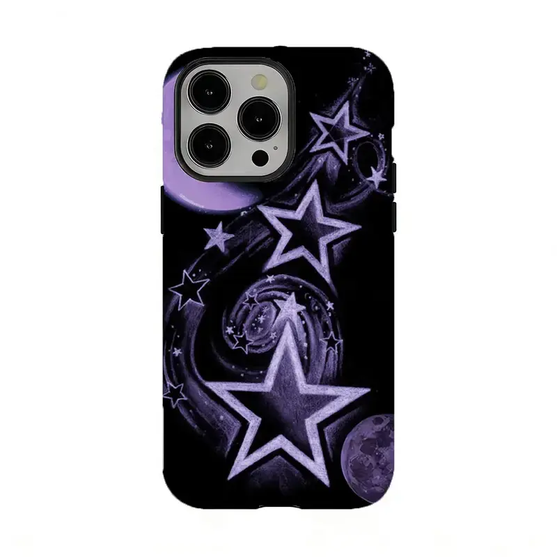 Y2K Galaxy Star Phone Case - Mystic Purple Moon & Swirl Art Protective Cover,for iPhone