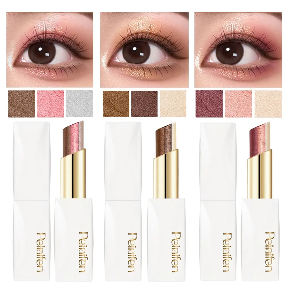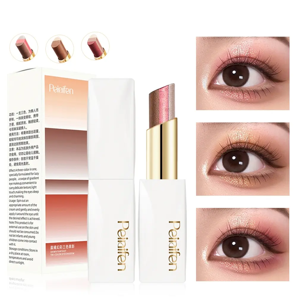 3-Color Shimmer Eyeshadow Stick - Easy Apply, Long Lasting for Natural Eye Looks