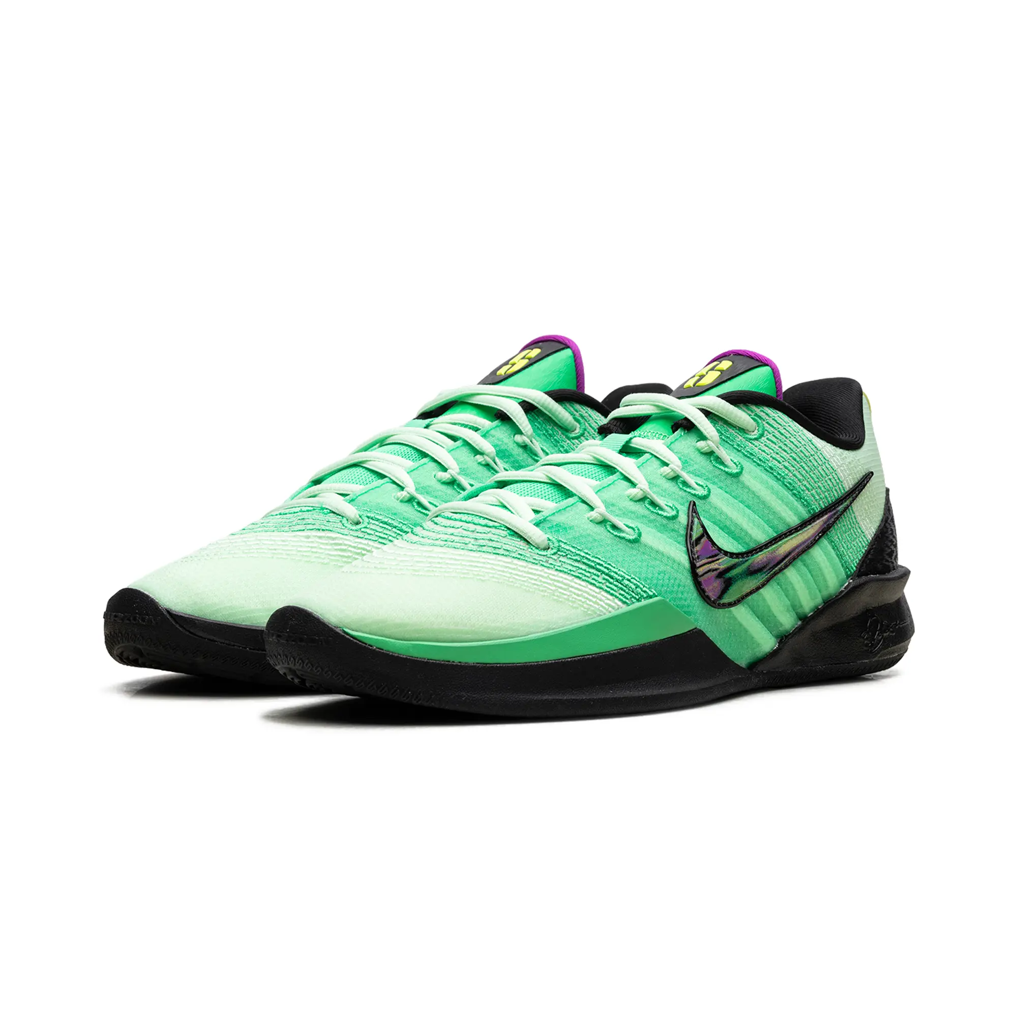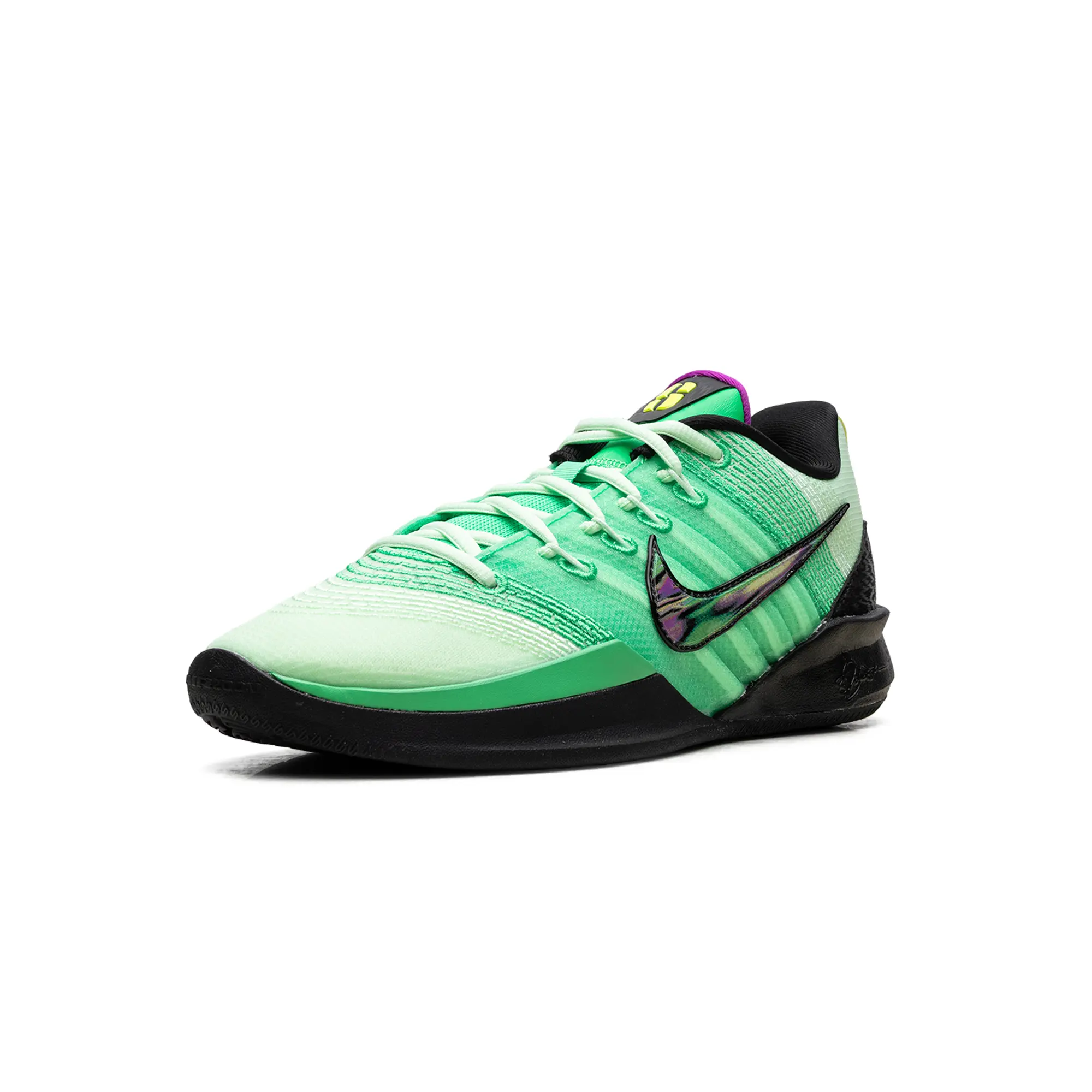 The Nike Sabrina 3 "Gamer" delivers a clinical, high-status execution of Sabrina Ionescu’s third signature silhouette, masterfully blending "Digital-Court" heritage with a radical, high-performance technicality. This women's exclusive features a premium landscape of engineered textile in "Electric Green," providing a structural, multi-dimensional foundation for the model’s lean, low-profile anatomical profile. The design is defined by its explosive strike, utilizing a specialized iridescent oil-slick Swoosh and vibrant purple tongue accents that inject a layer of high-octane luxury into the performance-engineered court build. Grounded by a solid black midsole featuring top-loaded Zoom Air and full-length React foam for elite energy return and finished with a data-informed traction outsole, this release successfully pairs the Sabrina 3’s aggressive DNA with a sophisticated, "Cyber-Hoops-Elite" aesthetic.